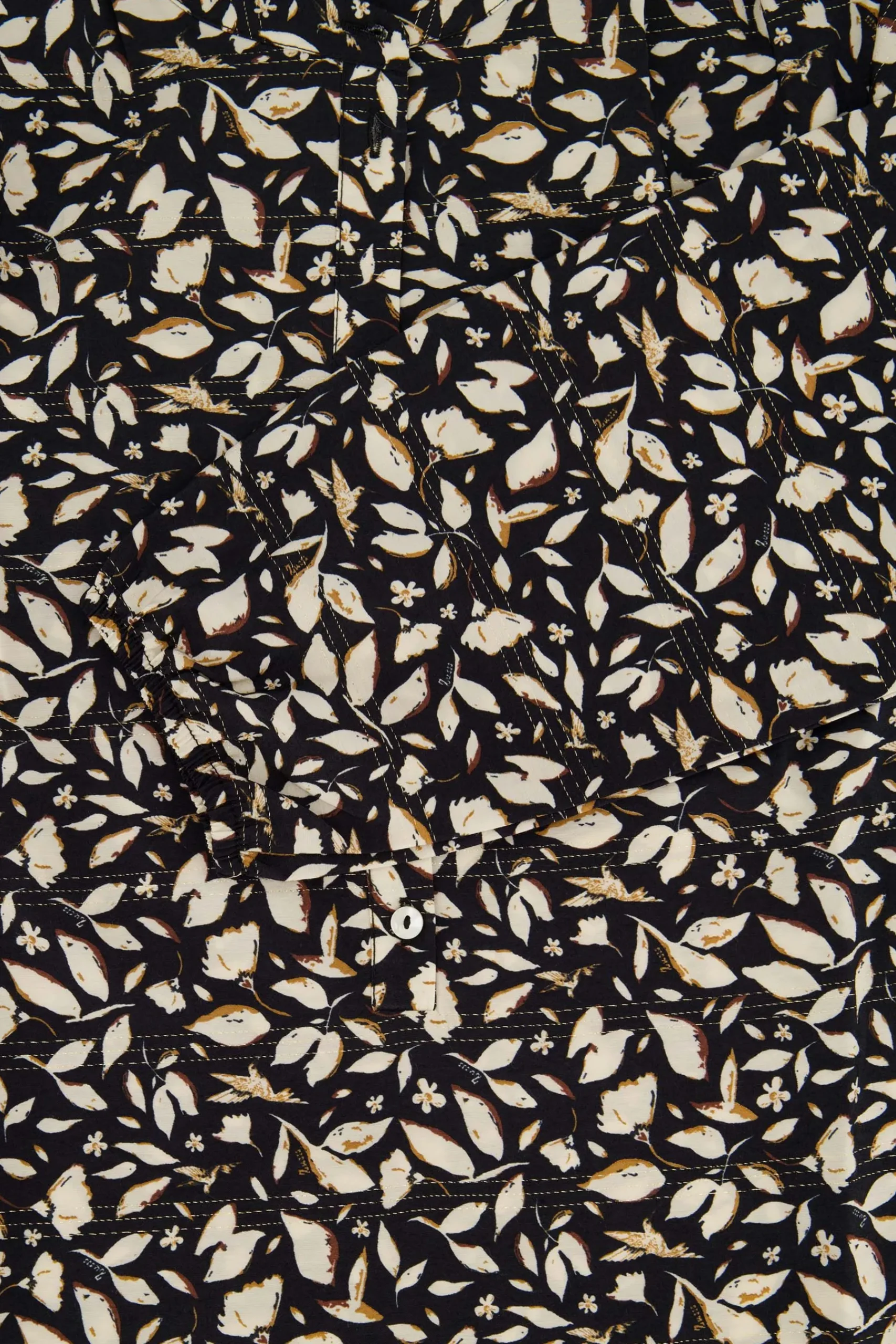Zusss blouse blaadjes print|Deze Zusss blouse is echt een favorietje! De blouse heeft een ronde hals en knoopjes bij de hals. Het heeft een geweldige print, met een leuk detail! Er zit namelijk en een mooi glitterdraadje door de stof heen. Je kunt het zowel op een jeans als nette pantalon combineren. Een echte aanvulling aan jouw garderobe!|Zusss: basic, stoer, uniek en een tikkeltje eigenwijs.