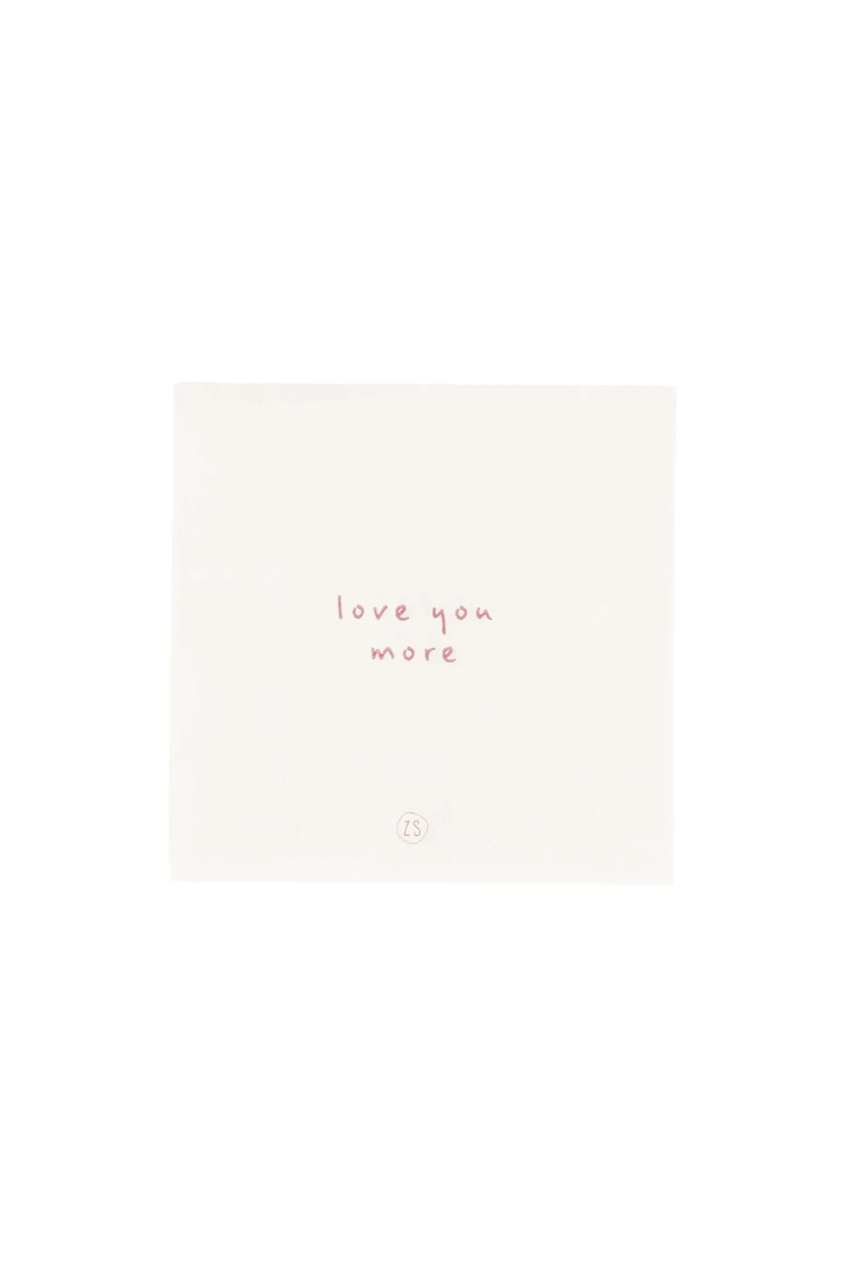 Zusss servetten love you more 12,5×12,5cm off white/rood|Dit is toch een servetje om blij van te worden! Deze servetten zijn off white van kleur met daarop in rode letters de tekst: love you more. Speciaal voor alle momentjes met je geliefden. De servetten worden geleverd in een pakje van 20 stuks. De servetten zijn 12,5×12,5cm groot. Voor welk gezellige moment ga jij ze gebruiken? Ook leuk als kadootje! |Zusss: basic, stoer, uniek en een tikkeltje eigenwijs.