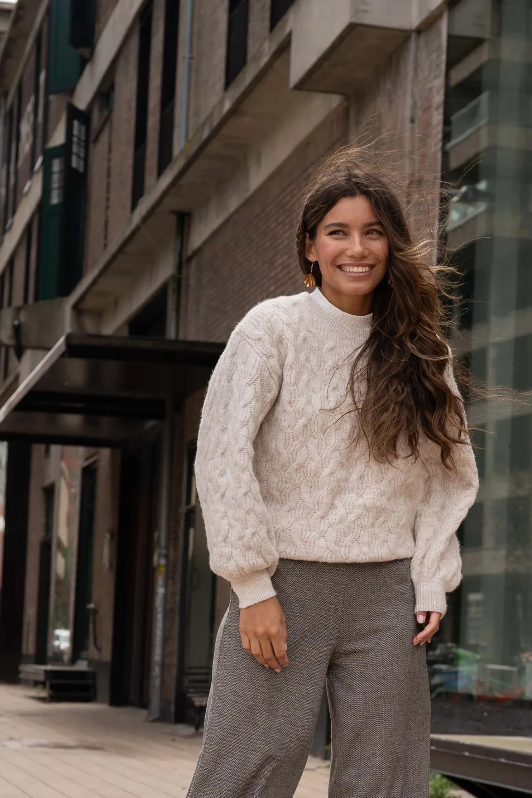 Zusss trui met structuur creme|Deze trui van Zusss zit o-zo lekker!. De trui is gemaakt met een fijne structuur en is creme van kleur. De ballonmouwen van deze trui zorgen voor een stijlvolle uitstraling. Deze trui houdt jou heerlijk warm als het buiten wat kouder wordt. Je draagt ‘m bijvoorbeeld op een Zusss broek in een mooie kleur. Dit item is gemaakt van 68% acetaat en 25% polyester. Neem ook eens een kijkje bij de Zusss tassen. Welke matcht bij jouw nieuwe outfit?|Zusss: basic, stoer, uniek en een tikkeltje eigenwijs.
