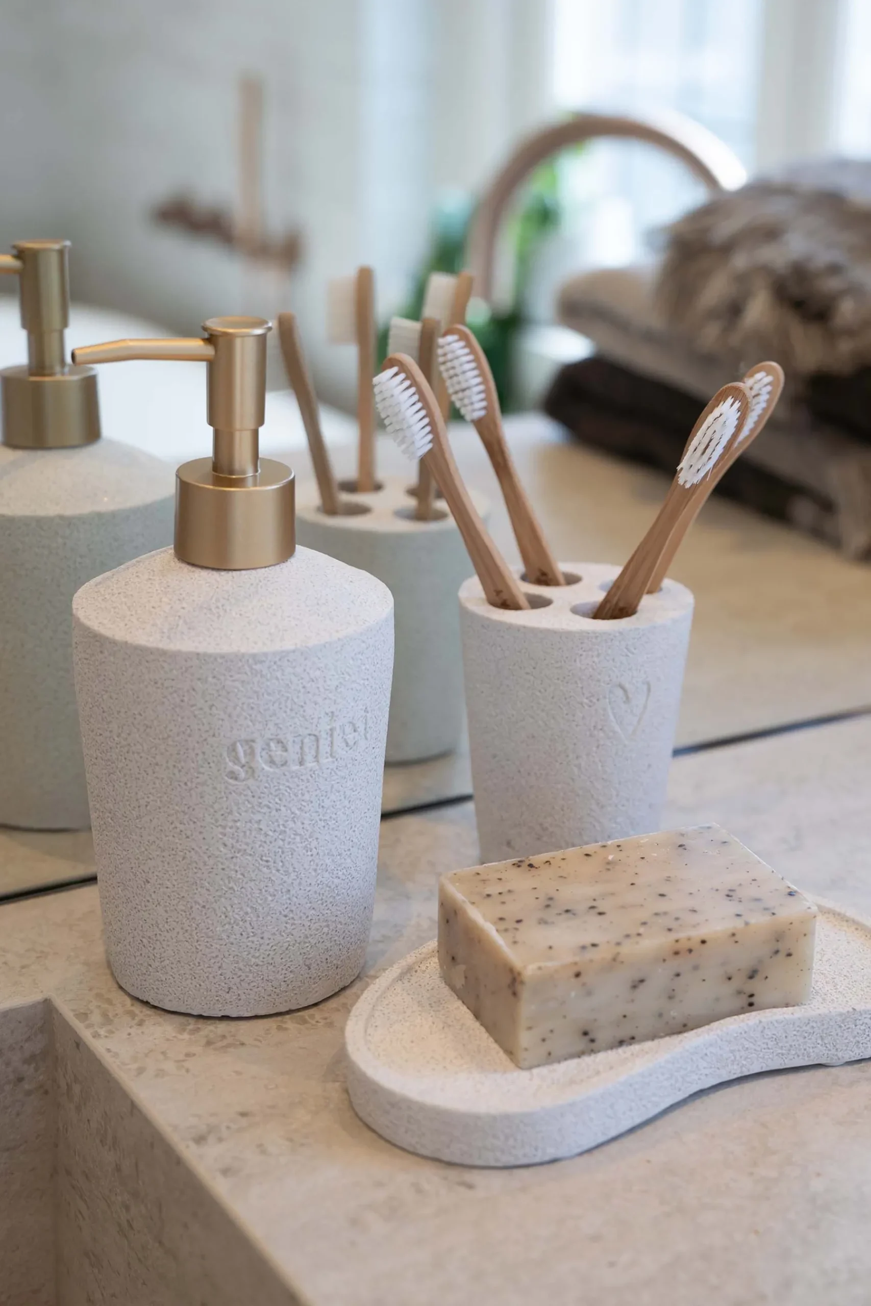 Zusss badkamerset zand|Met deze leuke badkamerset van Zusss maak jij jouw badkamer helemaal af! Deze set bestaat uit een 3 zandkleurige producten. Deze items zijn gemaakt van polyresin. Ook erg leuk om als kado te geven!Tip: neem ook een kijkje bij de Zusss verzorgingsproducten!|Zusss: basic, stoer, uniek en een tikkeltje eigenwijs.