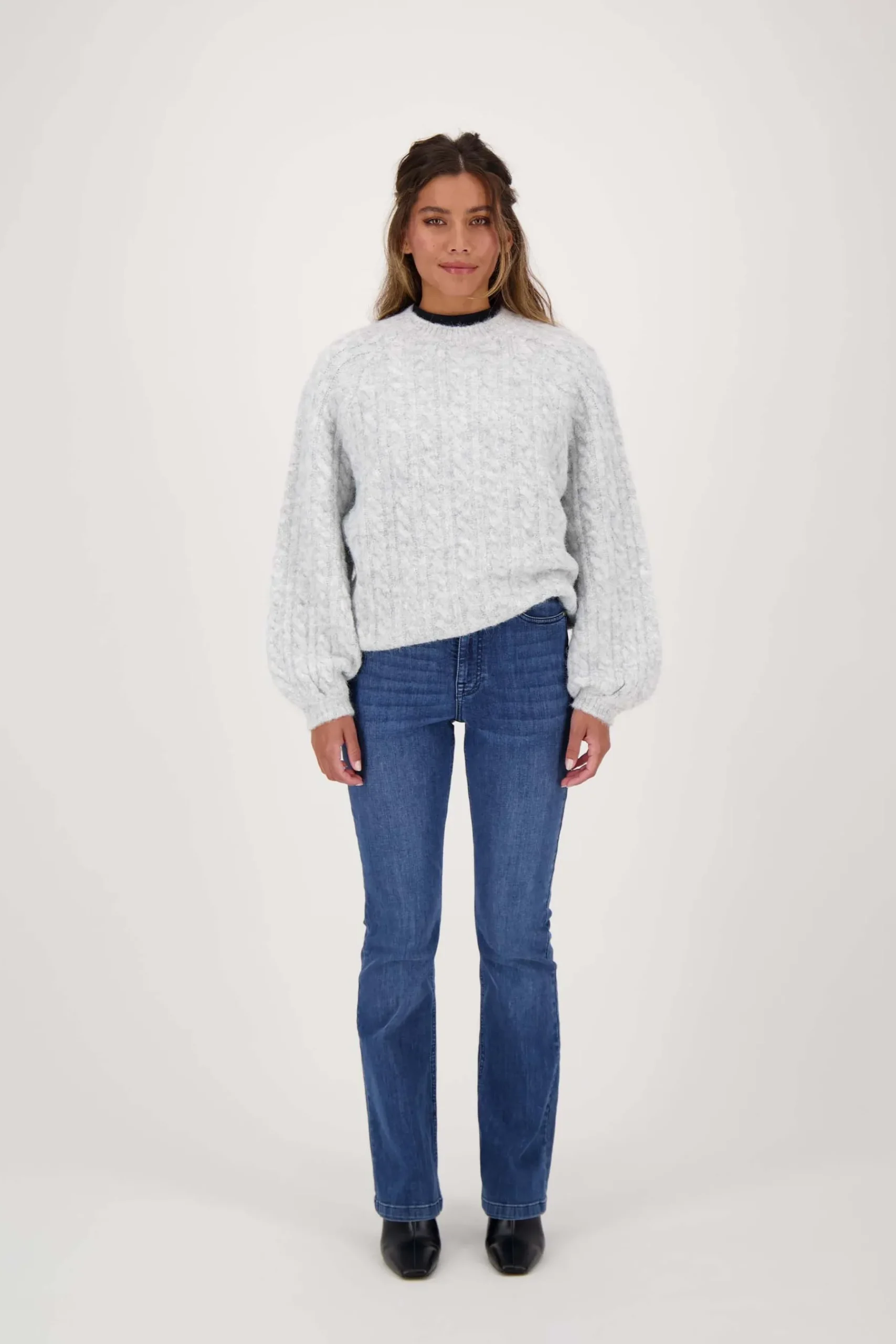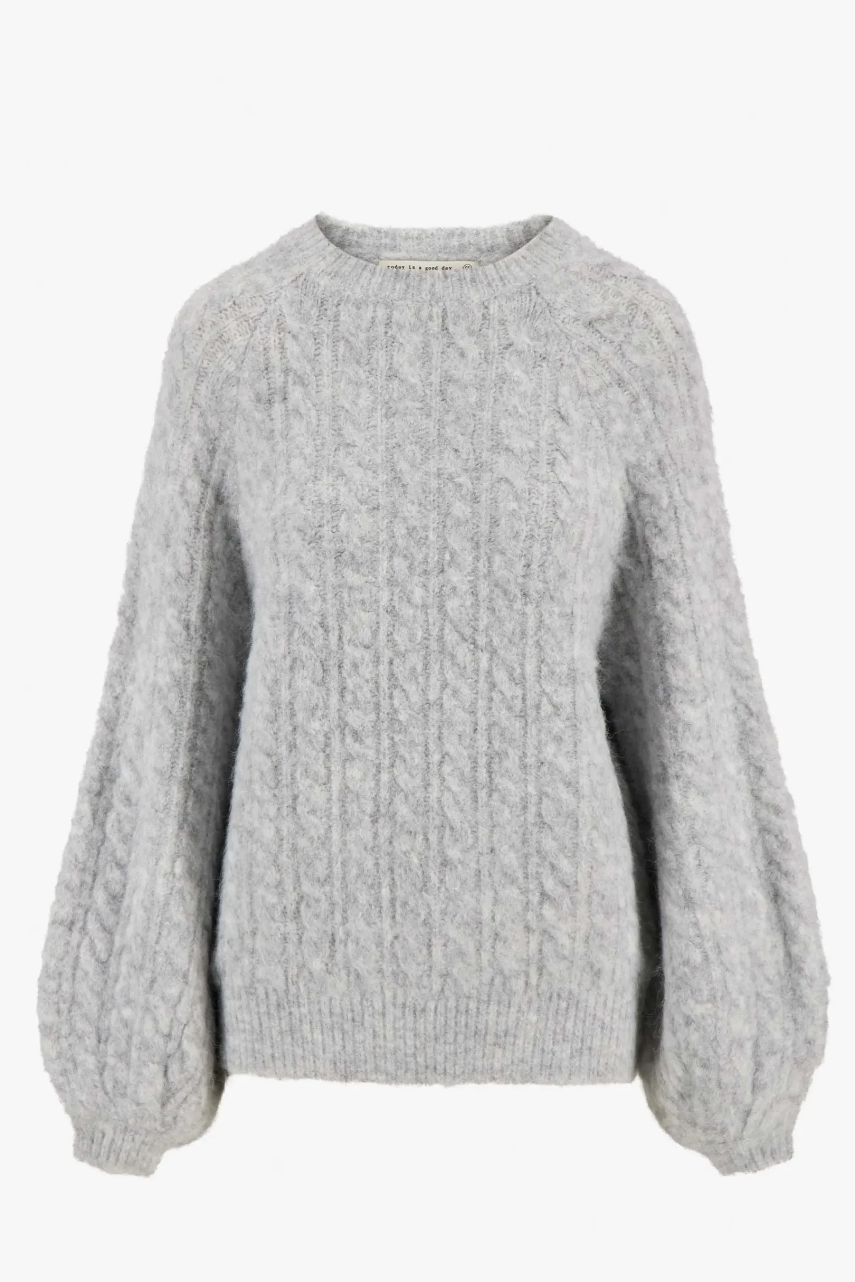Zusss kabel trui met ballonmouw lichtgrijs|Deze fijne trui van Zusss is zooo comfortabel. De trui heeft een kabelmotief …