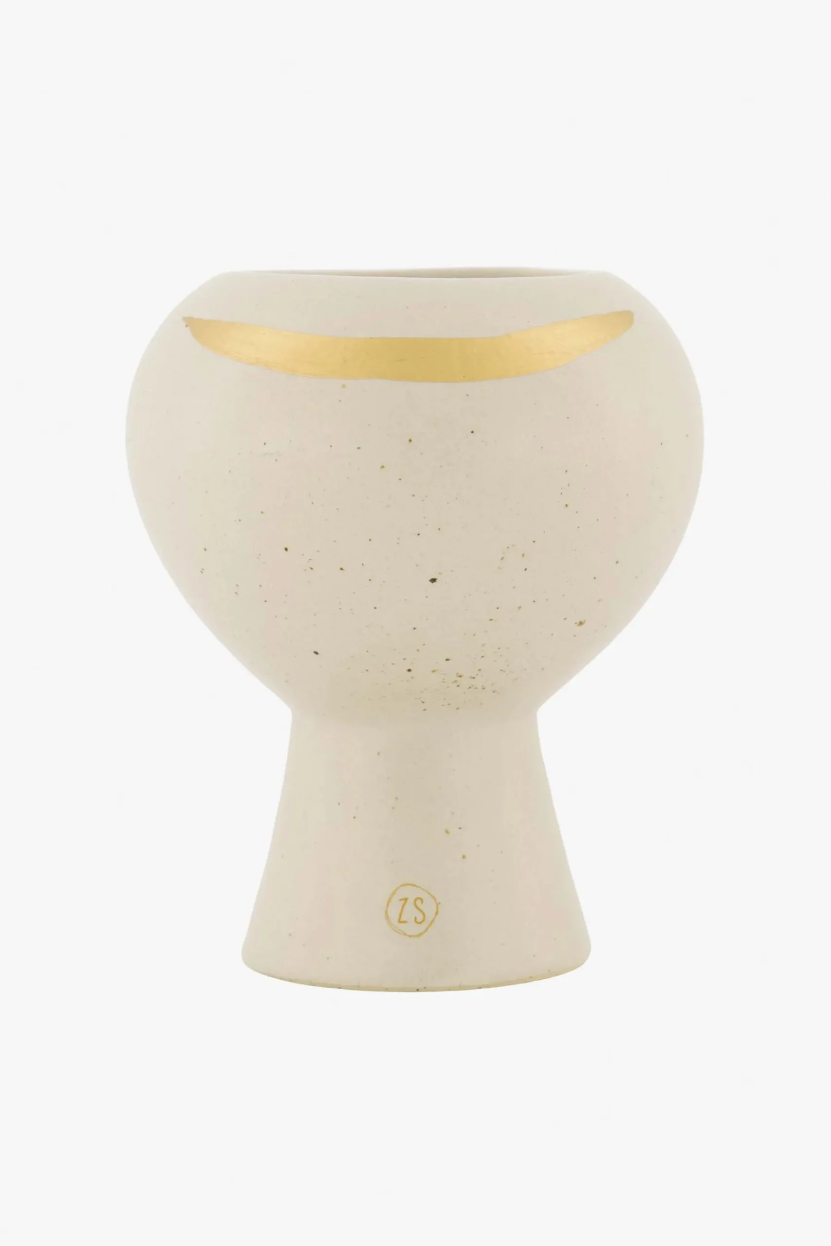 Zusss keramieken geurkaars met gouden streep zand spikkel|De vorm van deze geurkaars van Zusss is net even anders dan normaal. Deze kaars staat als het ware op een voetje, een wat grotere kaars die niet al te hoog is. Perfect om te combineren met wat hogere kaarsenhouders! De kaars is in een zandkleurige keramieken vorm gegoten. Op de voorkant staat een gouden streep en op de voet het Zusss logo. De doorsnede van deze geurkaars is 10 cm en de hoogte 13 cm. Aan wie geef jij deze geurkaars kado ?|Zusss: basic, stoer, uniek en een tikkeltje eigenwijs.