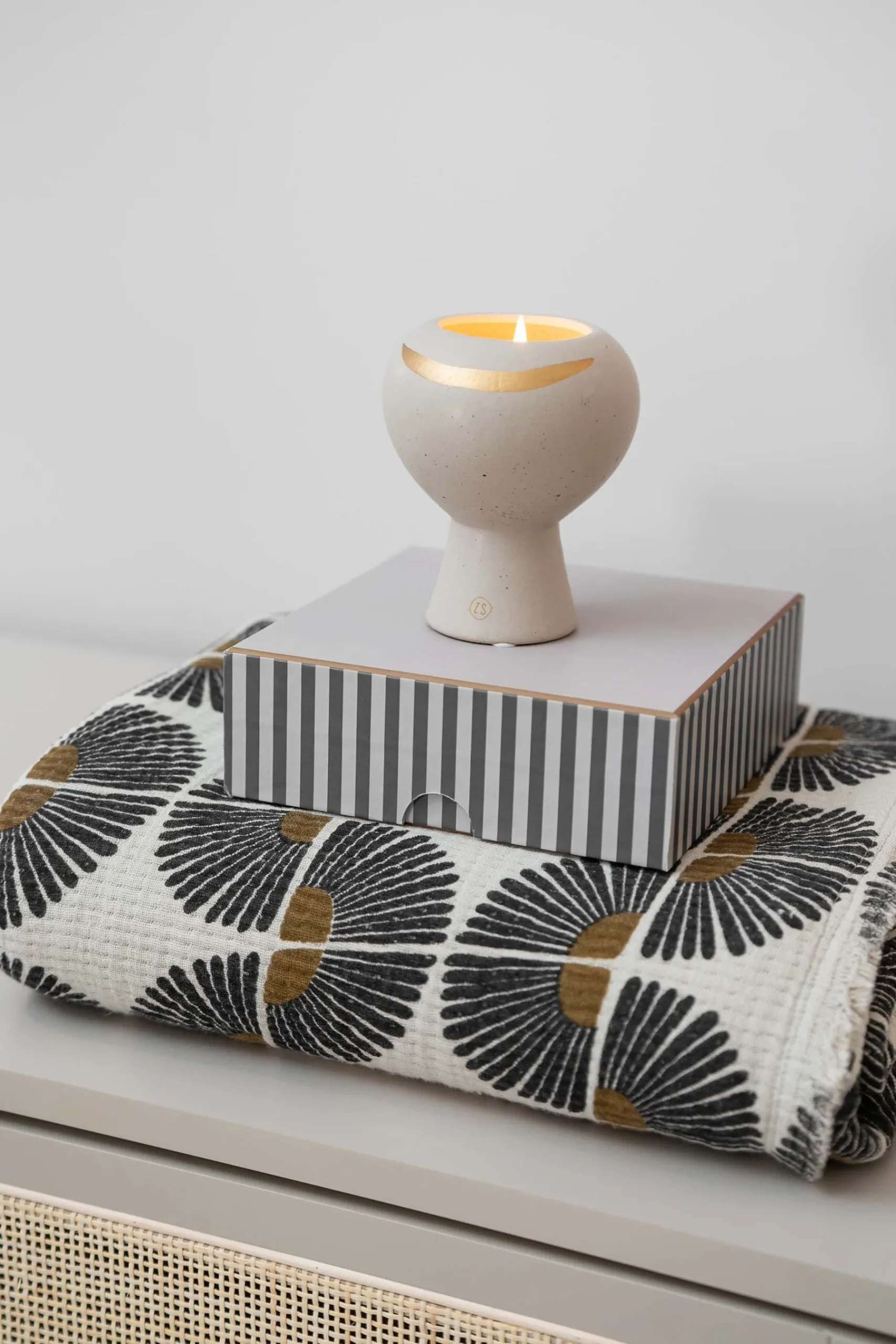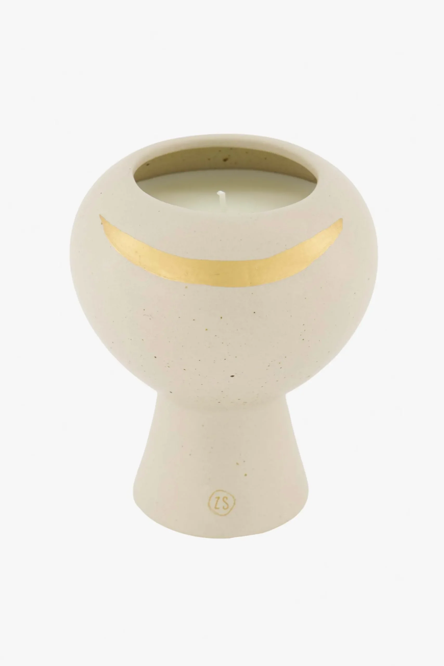 Zusss keramieken geurkaars met gouden streep zand spikkel|De vorm van deze geurkaars van Zusss is net even anders dan no…