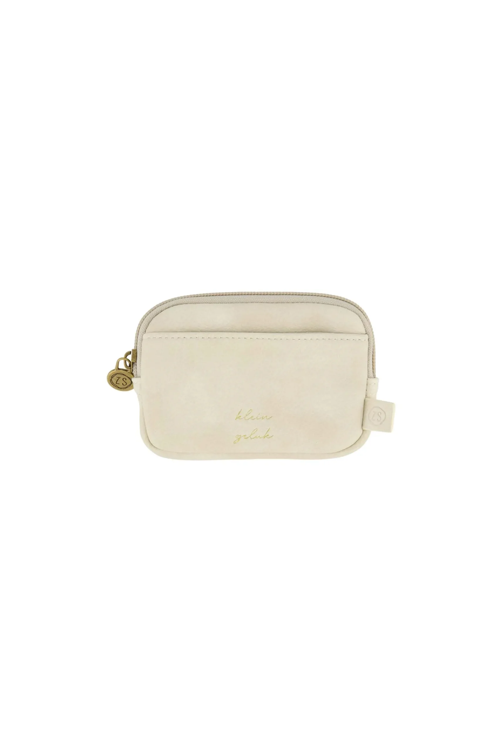 Zusss pasjeshouder ecru|Deze pasjeshouder van Zusss is ideaal! Hierin neem je alleen je belangrijkste pasjes mee. Zo kan je grote portemonnee thuisblijven als je op pad gaat. Deze pasjeshouder heeft de kleur ecru en is gemaakt van PU leer. Op het vakje aan de voorkant staat de tekst: klein geluk. Ook is de houder voorzien van een groter vakje die je opent en sluit met een ritsje. Aan deze ritssluiting hangt een muntje met het Zusss logo. Door deze sluiting is de pasjeshouder ook ideaal om kleingeld in op te bergen. Aan de zijkant zit een leren label met het Zusss logo. Dit item is ook erg leuk om andere kado te geven!|Zusss: basic, stoer, uniek en een tikkeltje eigenwijs.