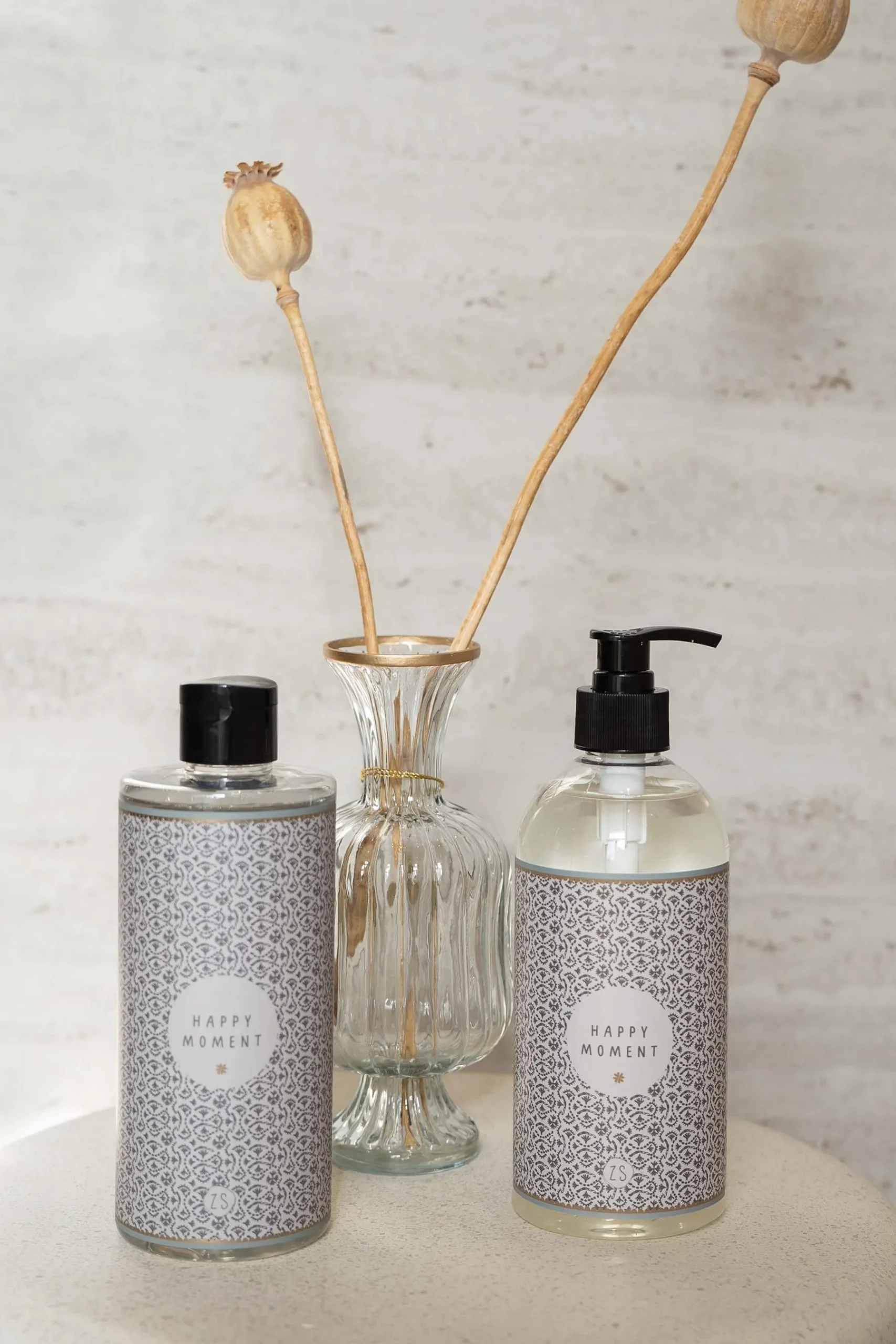 Zusss badschuim happy moment zand/leem|Met deze badschuim van Zusss zorg jij goed voor jezelf en voor je huid. Het etiket rondom de fles is dan ook heel toepasselijk. Deze is voorzien van een vrolijke print. Over het patroon staat een circel met daarop de tekst: happy moment. Ook het Zusss logo staat op het etiket. In de fles zit 500ml aan badschuim met een heerlijke bloesem geur. Al onze verzorgingsproducten zijn dierproefvrij tot stand gekomen. Er worden dus geen producten en ingrediënten op dieren getest. Tip: neem ook een kijkje bij de Zusss woonaccessoires!|Zusss: basic, stoer, uniek en een tikkeltje eigenwijs.