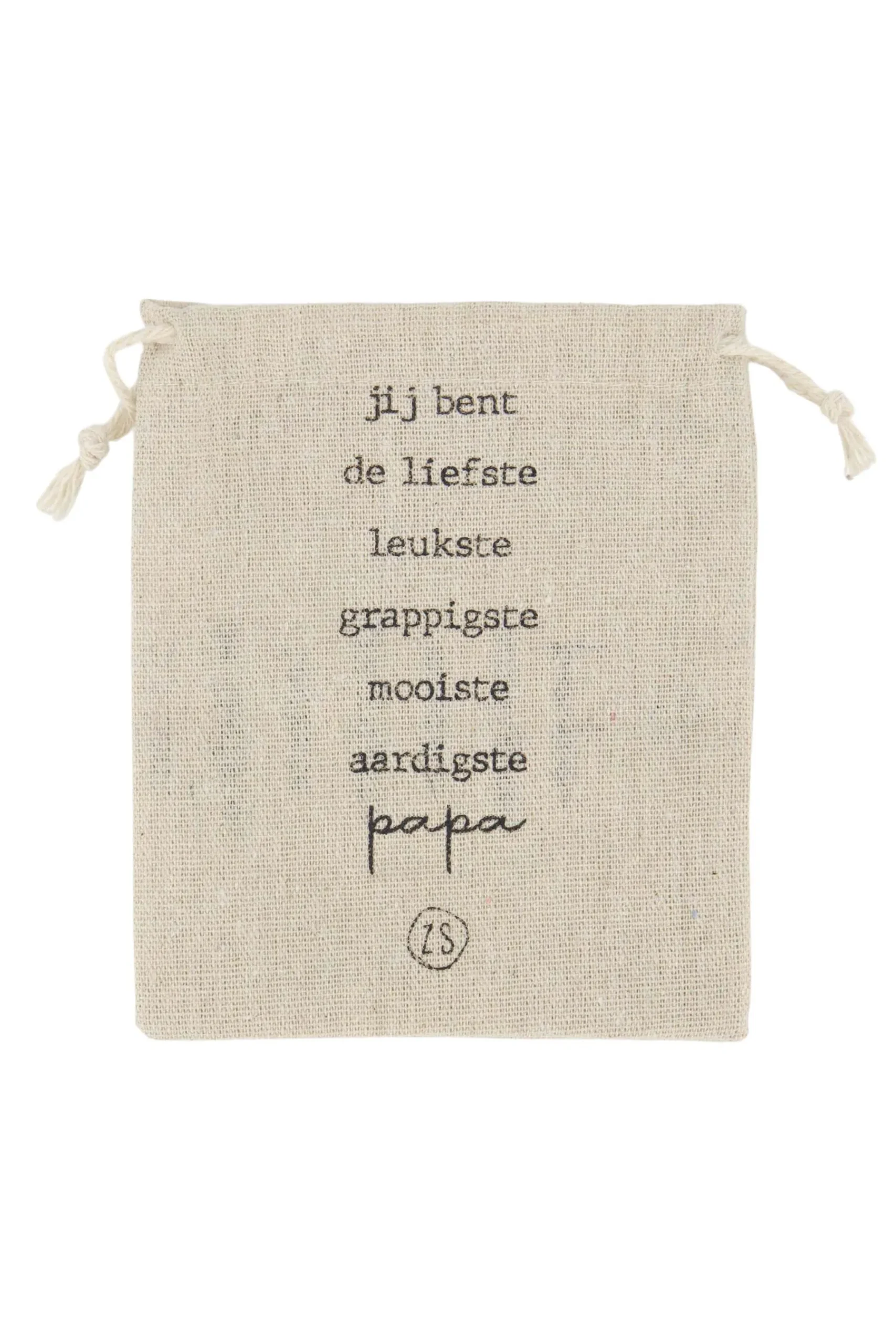Zusss geurkaars in katoenen zakje papa wit|Kaarsjes branden is altijd fijn, zeker bij een gezellig samen zijn. Deze geurkaars zit in een katoenen zakje met een mooie tekst erop. Om het blikje van de geurkaars zit een witte label met daarop een goud hartje en ‘papa’. De geur van fresh linen brengt een verfrissende en aangename sfeer in huis. Ook erg leuk als kadootje aan een papa! Steek ‘m aan met een Zusss lucifer en geniet van de heerlijke geur terwijl je lekker op de bank zit. Het formaat van deze geurkaars is 8x5cm en heeft ca 16 branduren. Neem ook een kijkje bij overige Zusss woonaccessoires!|Zusss: basic, stoer, uniek en een tikkeltje eigenwijs.