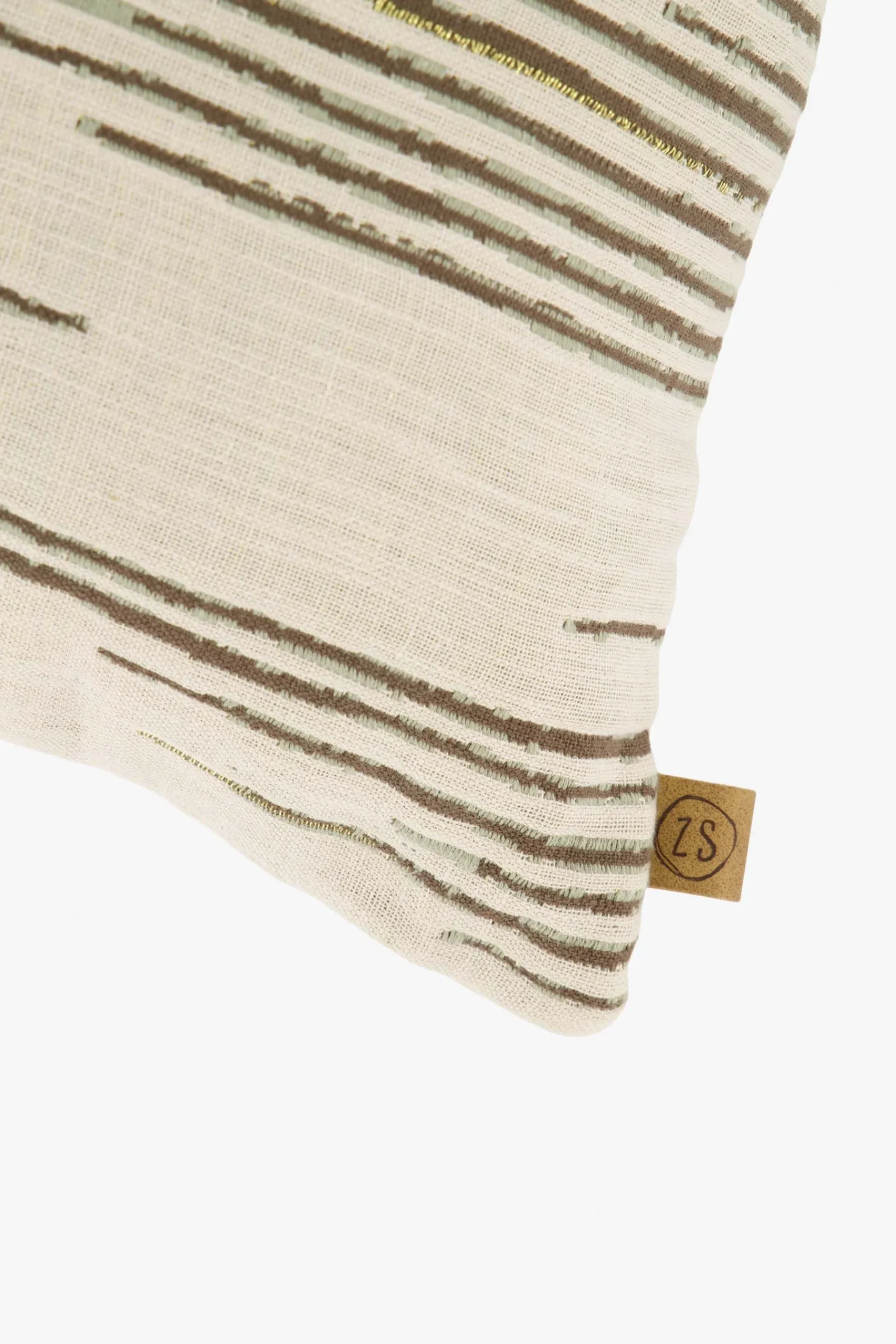 Zusss kussen lijnenpatroon 60x40cm zand/leem/saliegroen|Met dit stijlvolle kussen van Zusss haal je het voorjaar in huis…