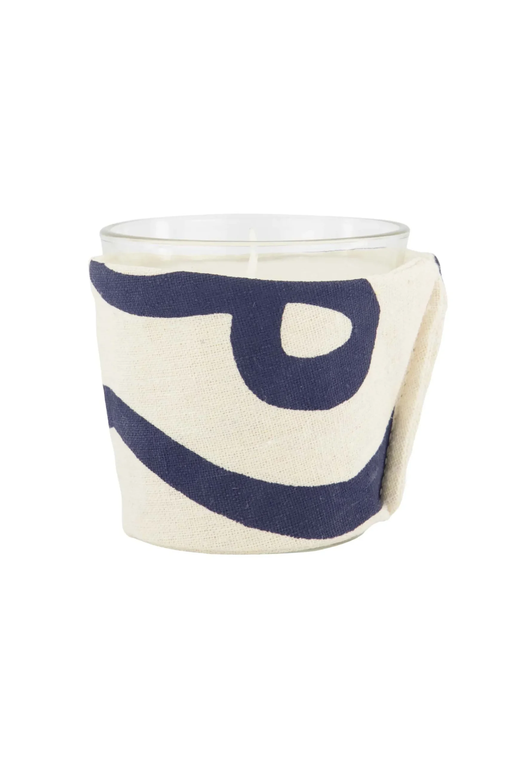Zusss geurkaars in linnen wikkel|Een geurkaars cadeau geven saai? Niet in dit geval! Deze witte geurkaars in glas is voorzien van een linnen wikkel met daarop een mooie, kobaltblauwe print. De linnen wikkel is in de kenmerkende Zusss kleur peper en zout. Het glas van de geurkaars loopt taps toe. De geurkaars is 7,5 cm hoog en heeft een doorsnede van 7,5 cm. Het glas van de geurkaars loopt taps toe. De geurkaars is 7,5 cm hoog en heeft een doorsnede van 7,5 cm.|Zusss: basic, stoer en een tikkeltje eigenwijs.