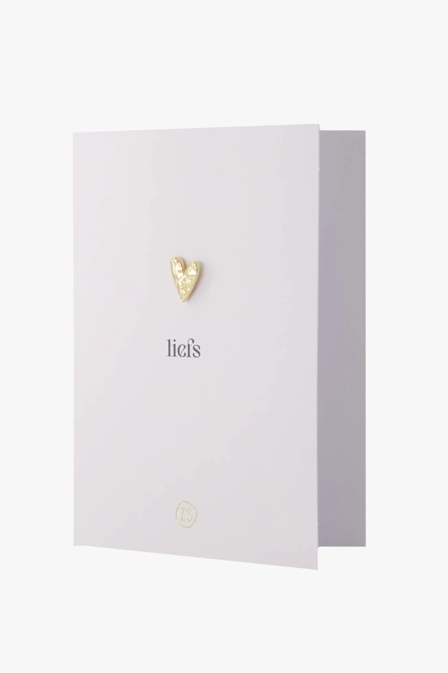 Zusss wenskaart met broche hartje wit|Met een lieve Zusss kaart tover je al gauw een glimlach op iemands gezicht! Op deze witte wenskaart zit een goudkleurige broche in de vorm van een hartje. Ook staat er “liefs” op deze kaart. Onderaan staat een goudkleurig Zusss logo. Wie verras jij met deze wenskaart? Tip: neem een kijkje bij de Zusss spullen voor in huis!|Zusss: basic, stoer, uniek en een tikkeltje eigenwijs.