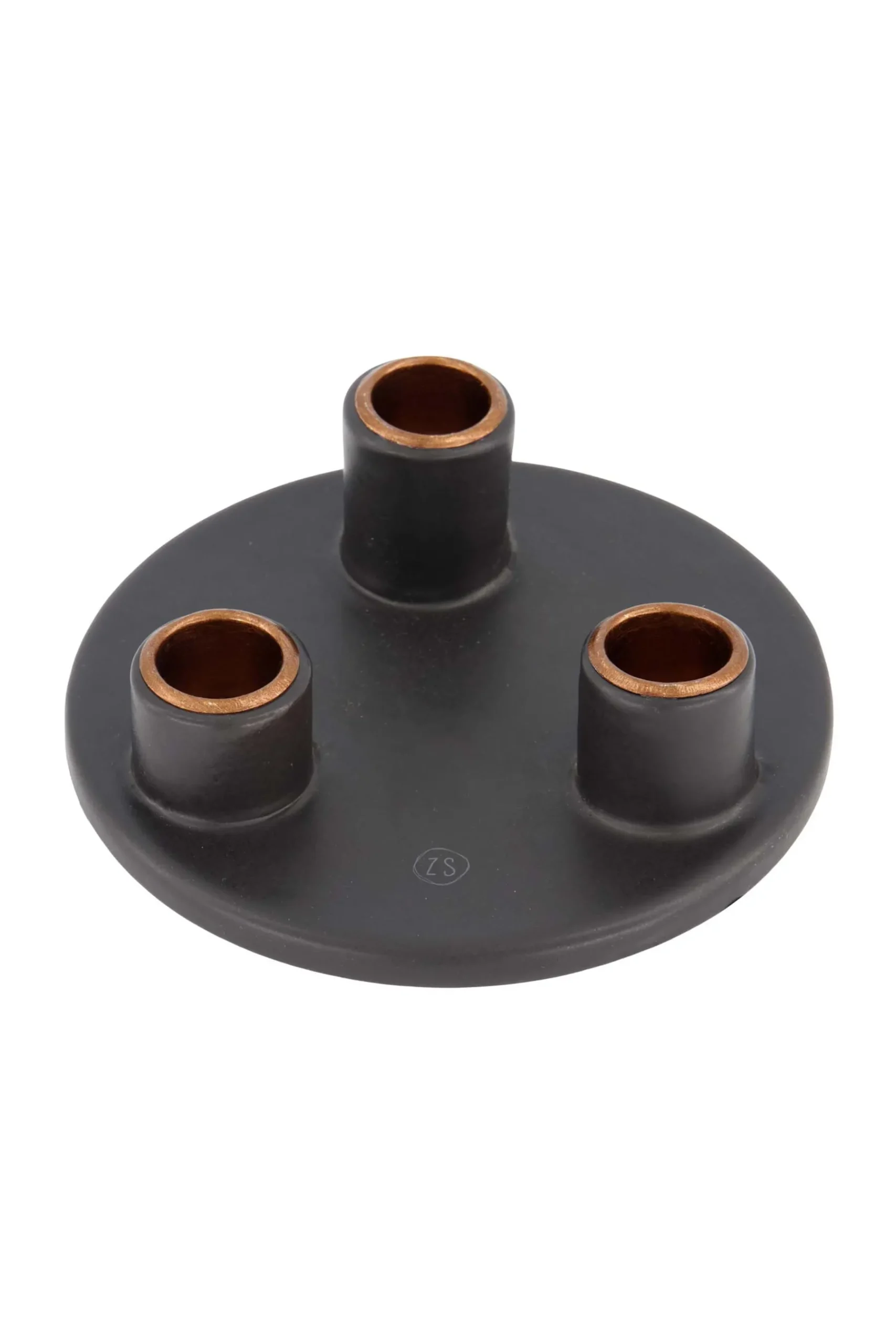 Zusss keramieken kandelaar rond|Deze kandelaar van Zusss is gemaakt van keramiek en is verkrijgbaar in de kleur antraciet wat deze kandelaar een stoer uiterlijk geeft. De basis van de kandelaar is een rond schaaltje van 15 cm doorsnede met daarin 3 openingen voor de rustieke Zusss kaarsen van 12cm en 20cm, en de geribbelde Zusss kaarsen van 20cm. Deze openingen verschillen in hoogte waardoor iedere kaars een eigen hoogte heeft. Een leuk en eigenwijs speels effect.|Zusss: basic, stoer en een tikkeltje eigenwijs.