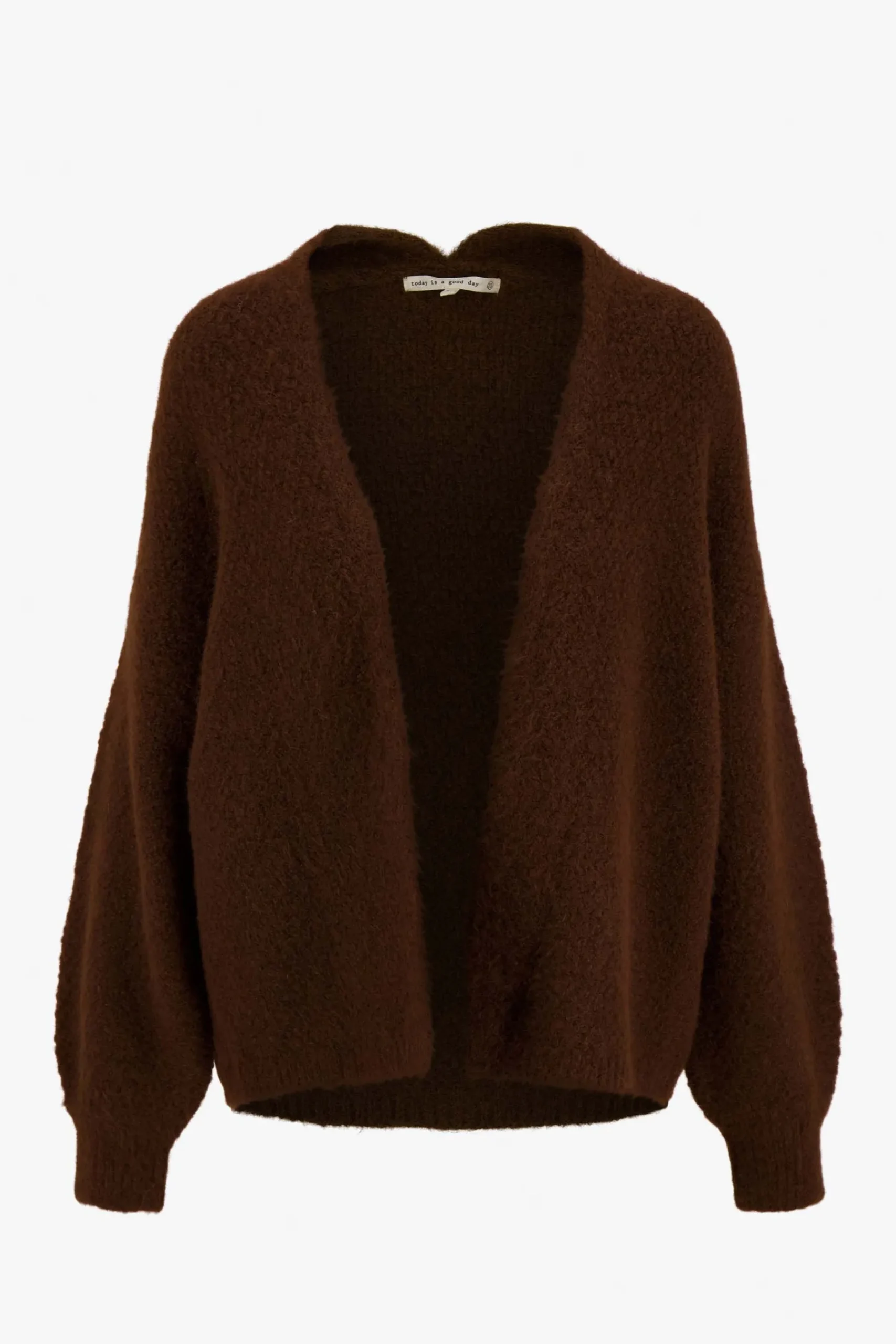 Zusss openvallend vest middenbruin|Op het moment dat je de deur uitstapt, is het toch kouder dan je dacht. Hoppa, dit fijne vest schiet je zo aan. Dit zachte openvallende vest is middenbruin van kleur en heeft ballonmouwen. Dit item is gemaakt van 53% polyamide en 25% wol. Was dit fijngebreide vest op 30 graden in een wolwasprogramma en laat ‘m liggend drogen. Anders rekt ‘ie uit en dat is zonde. Vergeet ook niet om een kijkje te nemen bij de andere Zusss kleding om je outfit compleet te maken. Welk item combineer jij met dit fijne vest?|Zusss: basic, stoer, uniek en een tikkeltje eigenwijs.