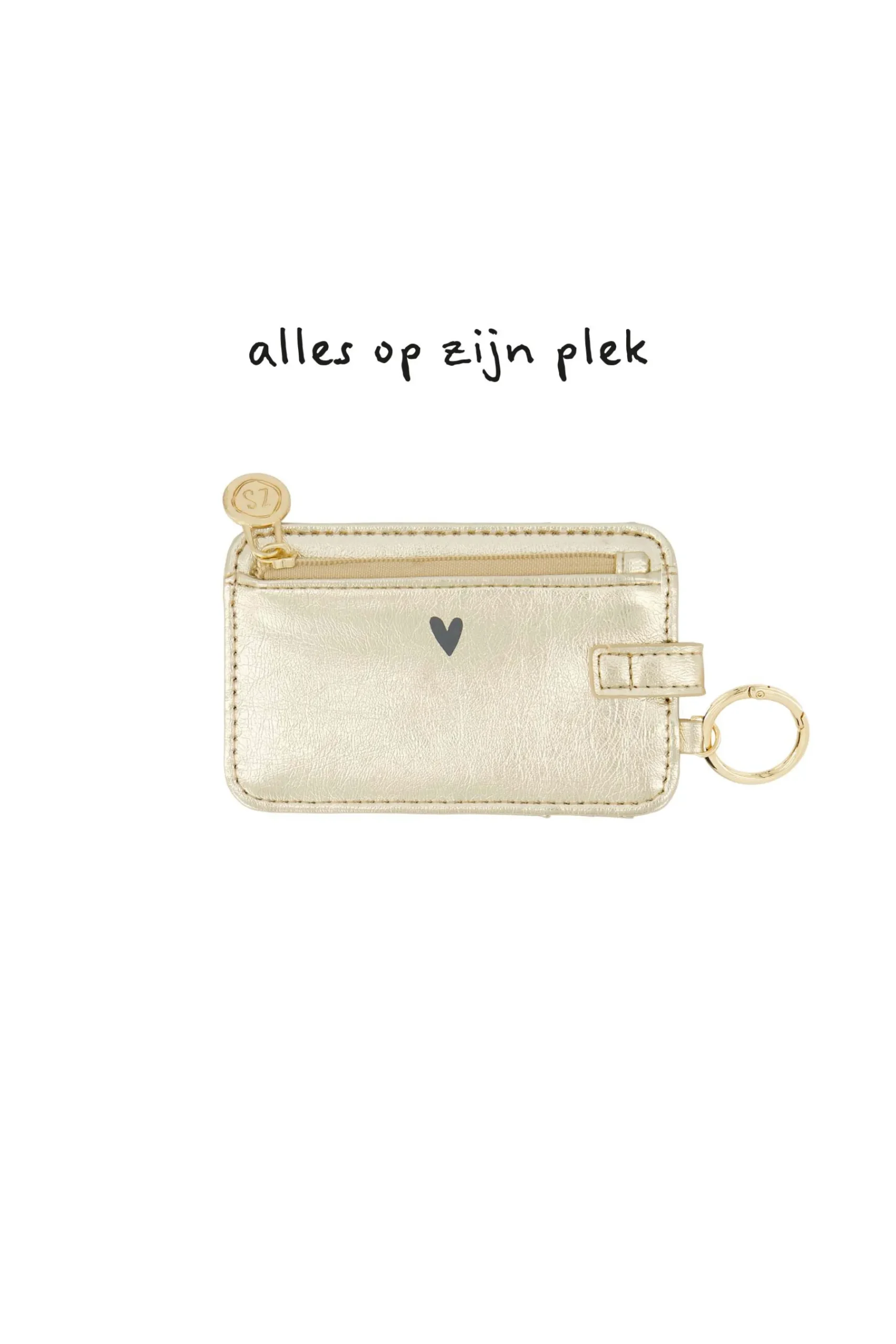 Zusss pasjeshouder hartje goud|Deze pasjeshouder van Zusss is ideaal! Hierin neem je alleen je belangrijkste pasjes mee. Zo kan je grote portemonnee thuisblijven als je op pad gaat. Deze pasjeshouder is goud van kleur en is gemaakt van PU leer. Op het ritsvakje aan de voorkant staat een zwart Zusss hartje. Aan deze ritssluiting hangt een muntje met daarop het Zusss logo. Door de gouden ring kun je deze pasjeshouder ook handig aan je sleutelbos of tas hangen. Dit item is ook erg leuk om kado te geven!|Zusss: basic, stoer, uniek en een tikkeltje eigenwijs.