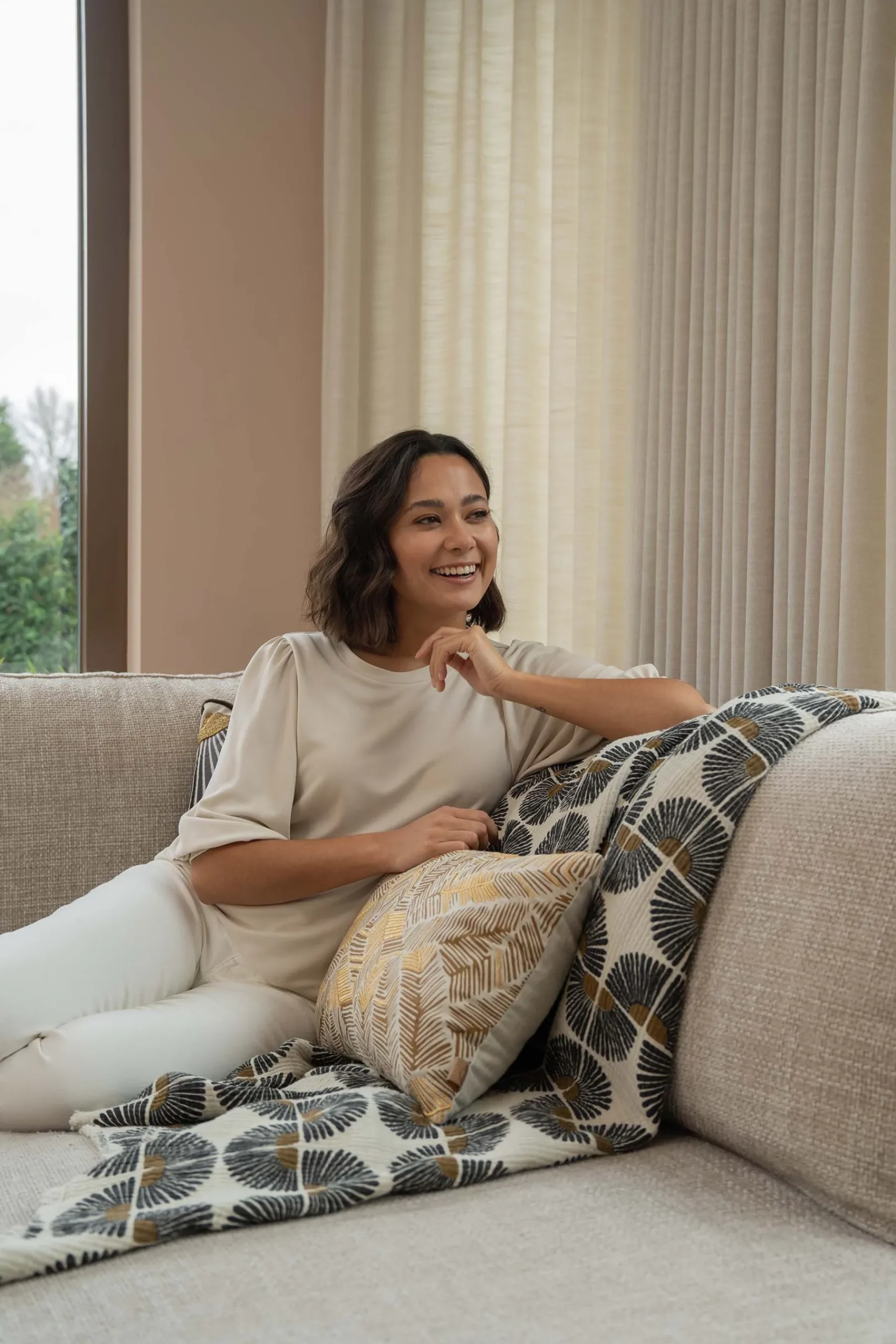 Zusss plaid waaiers 130x170cm zand/antraciet/oker|Fijne dekentjes komen altijd van pas! Je kruipt er lekker onder op de …