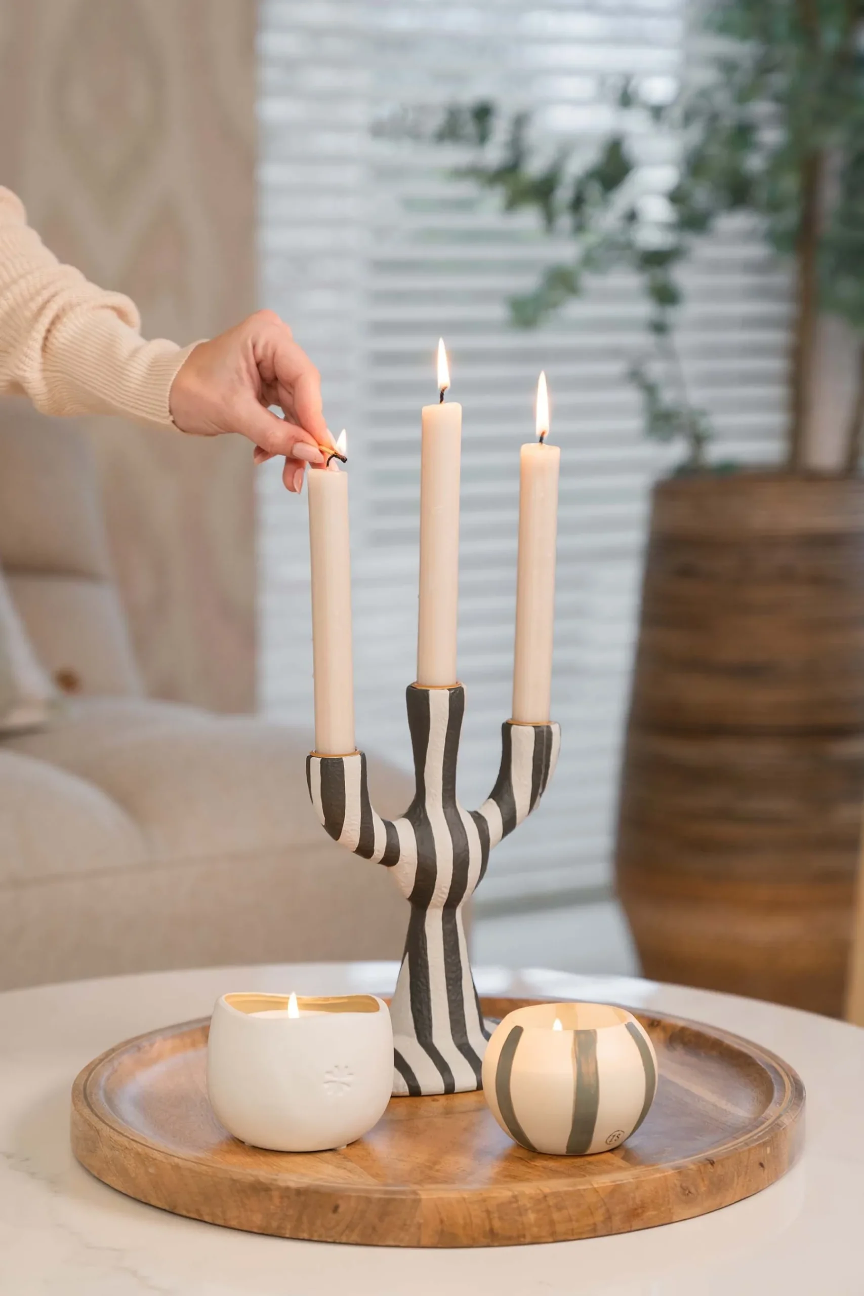 Sale polystone kandelaar met strepen Kaarsen | Kaarsenhouders