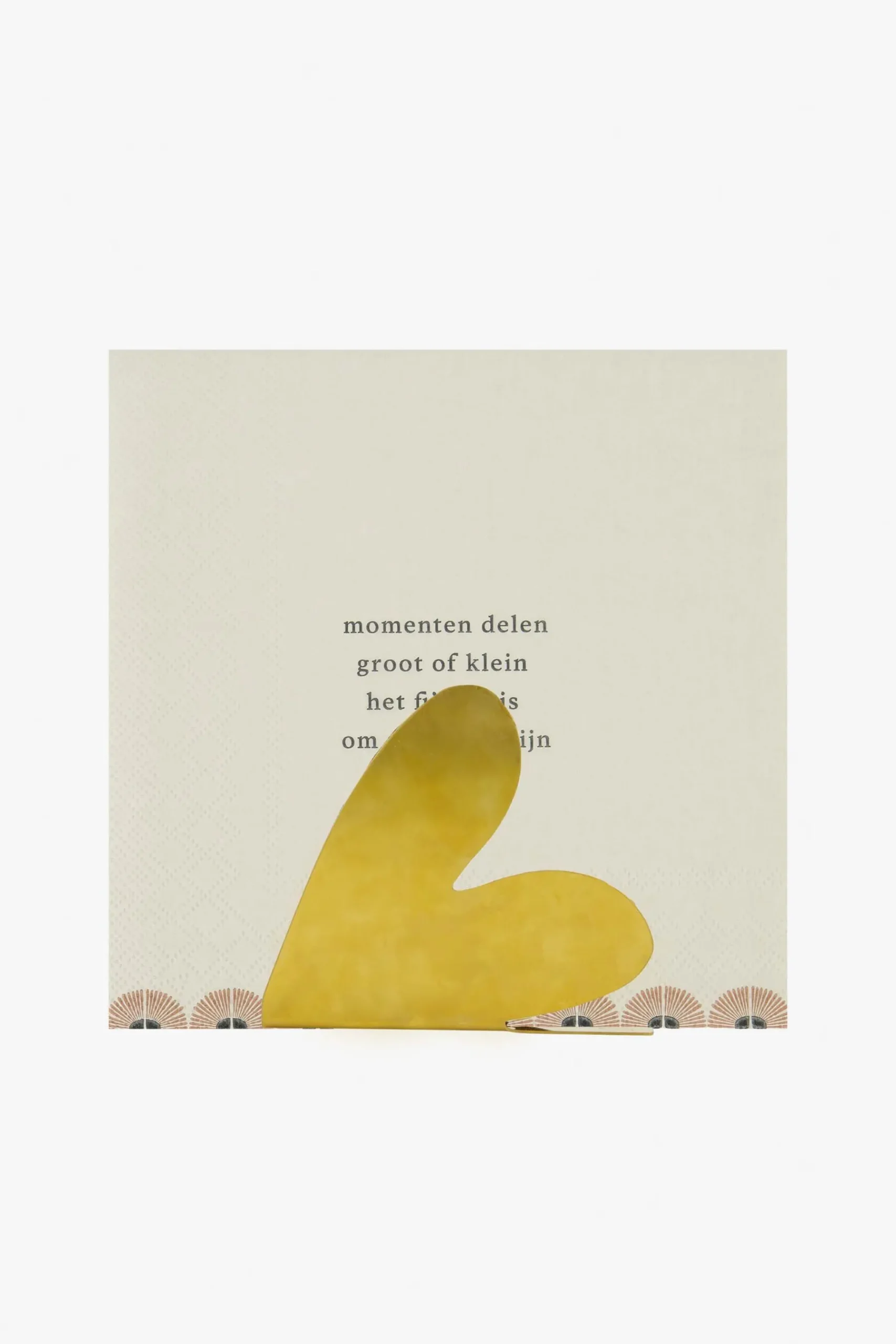 Zusss servethouder hartje goud|Deze servethouder van Zusss is o-zo leuk! De servethouder is goudkleurig en gemaakt van metaal. In deze houder geef je servetten een prachtig plekje. De houder heeft een formaat van 10x11cm. Ook erg leuk als kerstkadootje! |Zusss: basic, stoer, uniek en een tikkeltje eigenwijs.