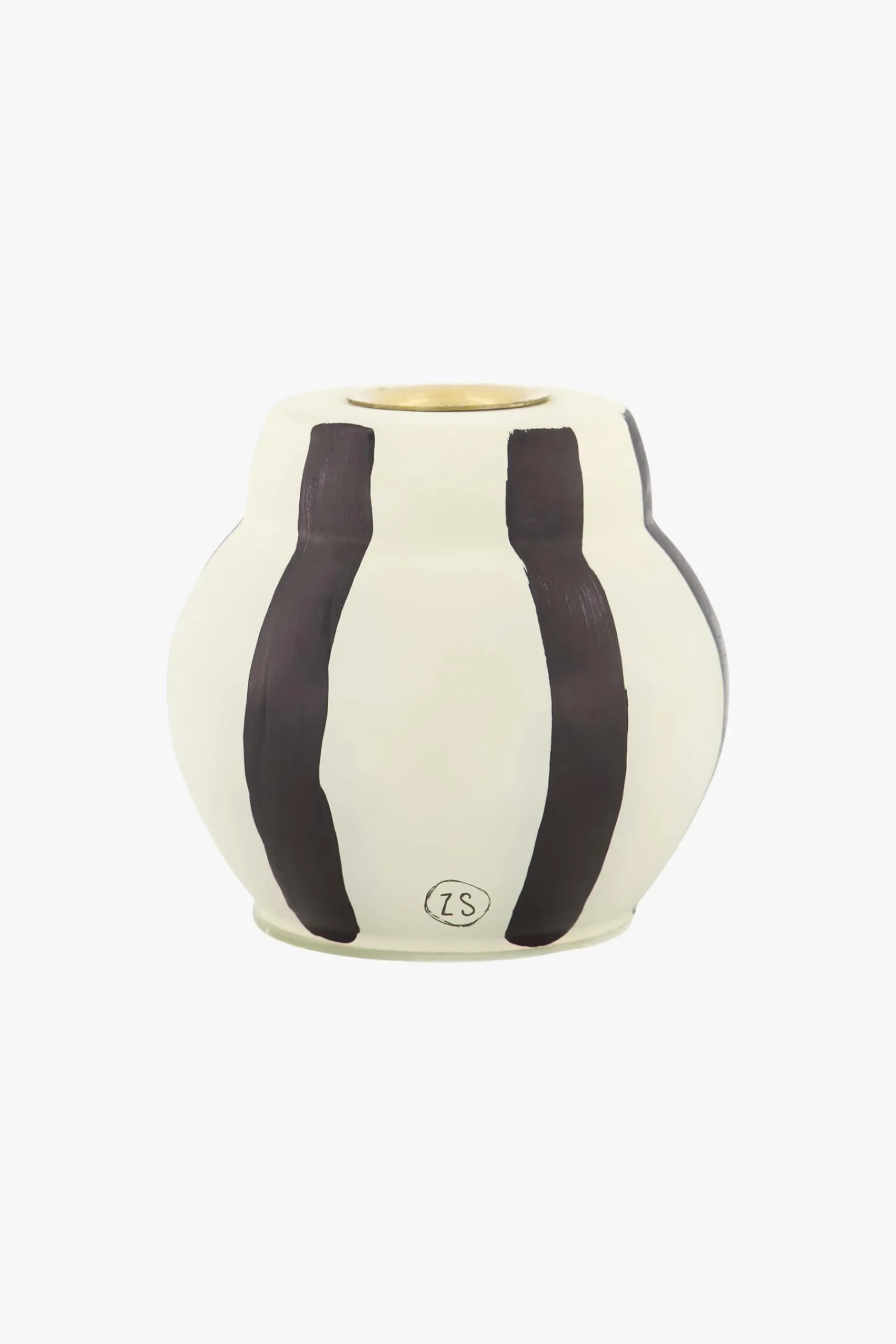 Zusss glazen kandelaar met strepen zand/antraciet|Jaaa, dit pareltje wil je hebben! Deze glazen kandelaar van Zusss is lekker vrolijk. Zet hierin gezellig een kaarsje aan tijdens het diner of gewoon als je met je theetje op de bank zit. Deze zand en antraciet gestreepte kandelaar brengt je helemaal in de voorjaarssferen. In deze kandelaar passen de rustieke Zusss kaarsen van 12cm en 20cm, en de geribbelde Zusss kaarsen van 20cm. De kandelaar heeft een doorsnede van 9 centimeter en is 8,5 centimeter hoog. Ook erg leuk als kadootje! |Zusss: basic, stoer, uniek en een tikkeltje eigenwijs.