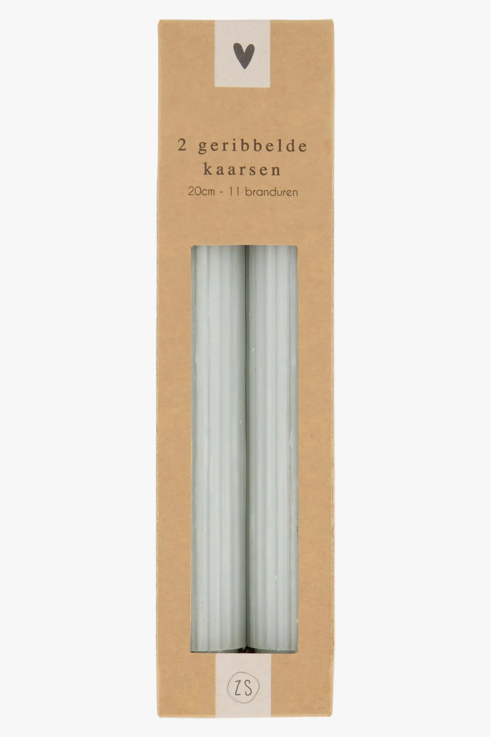 Zusss 2 geribbelde kaarsen 20 cm saliegroen|Twee geribbelde kaarsen in een handig opbergdoosje. Kaarsen zijn altijd zo g…