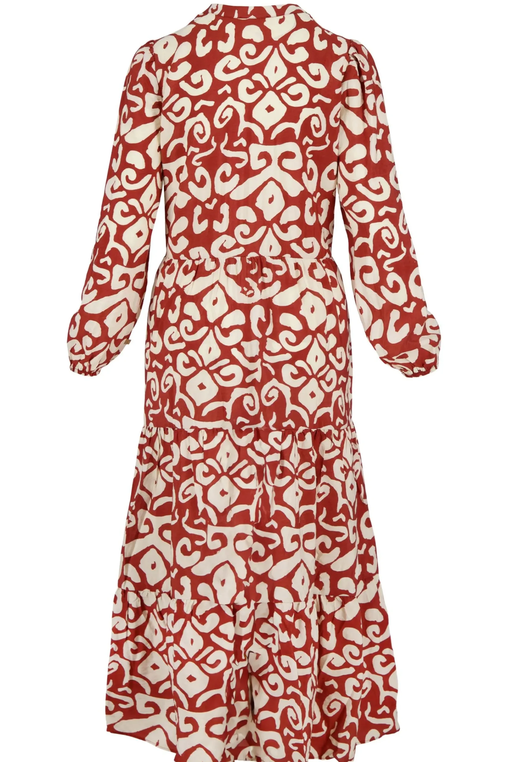 Zusss maxi jurk ornament print cacaobruin/zand|Jaa deze wil je hebben! In deze prachtige jurk van Zusss straal je helemaal. De jurk heeft een v-hals en mouwen tot halverwege de onderarm. Deze maxi jurk heeft een unieke ornament print in de kleuren cacaobruin en zand. Daar word je toch spontaan blij van? Dit item is gemaakt van 85% viscose en 15% polyamide. Je maakt jouw zomerse outfit af met stijlvolle sandalen of laarzen. Neem ook eens een kijkje bij de Zusss tassen ! Welke maakt jouw nieuwe outfit af?|Zusss: basic, stoer, uniek en een tikkeltje eigenwijs.