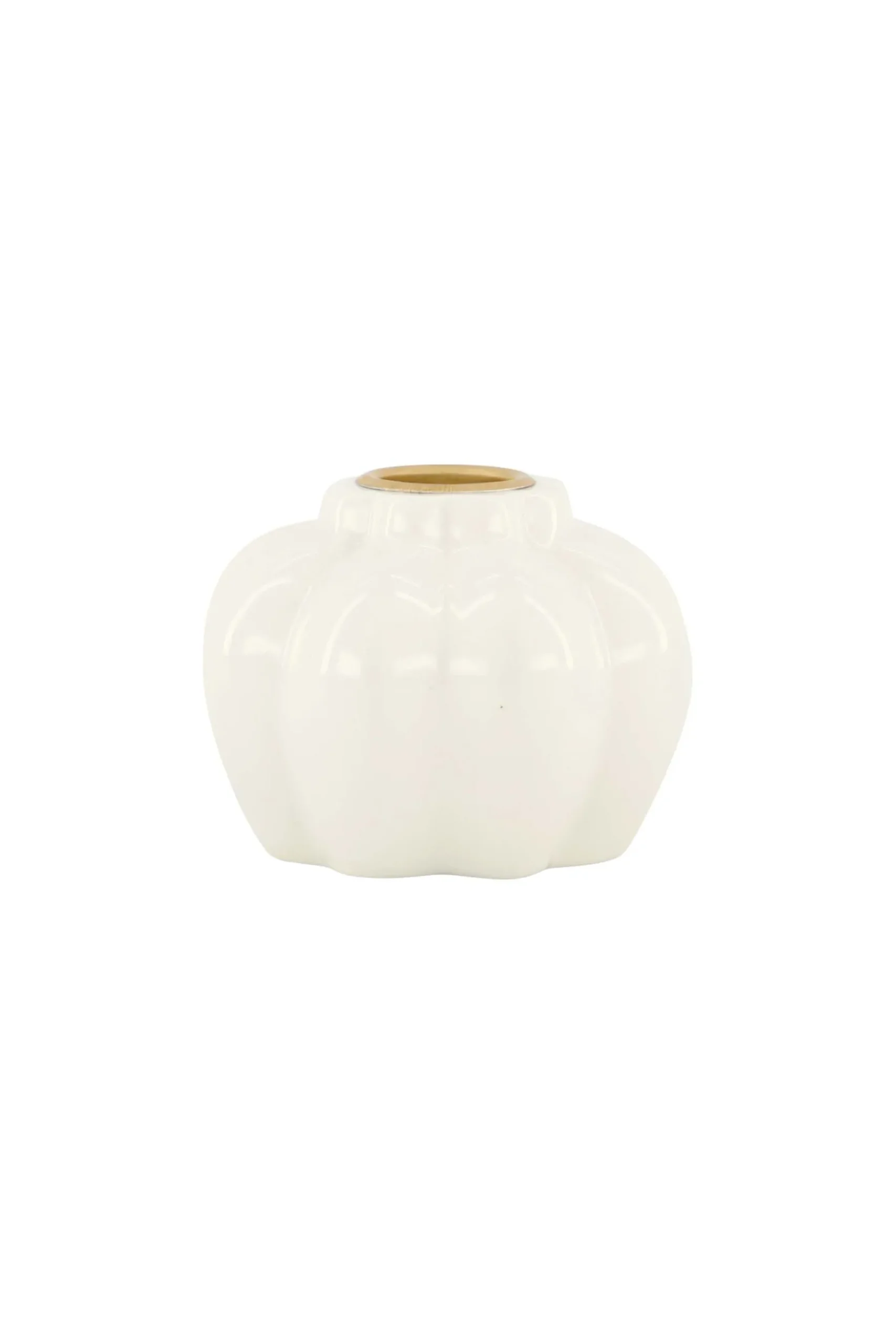 Zusss keramieken kandelaar wit|Prachtig is ‘ie, deze keramieken kandelaar van Zusss. De kandelaar is gemaakt van keramiek en heeft een unieke ronde vorm. De kandelaar is wit van kleur met een gouden detail, lekker sjiek! Deze basic kleur is gemakkelijk te combineren met andere woonaccessoires. In deze kandelaar passen de rustieke Zusss kaarsen van 12cm en 20cm, en de geribbelde Zusss kaarsen van 20cm. Deze kandelaar is 6x8cm groot. Ook erg leuk te combineren met andere Zusss kaarsenhouders of een leuke vaas!|Zusss: basic, stoer, uniek en een tikkeltje eigenwijs.