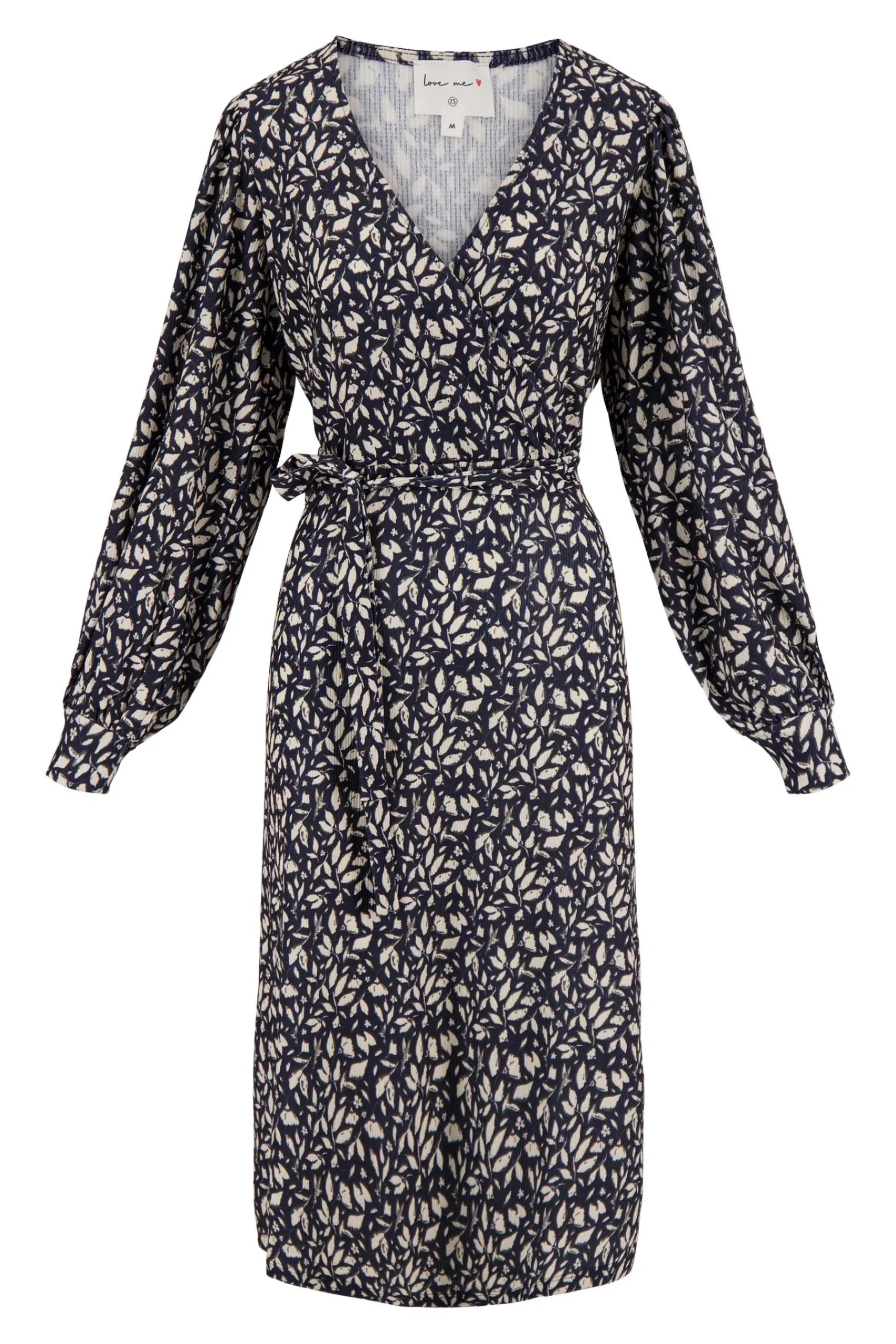 Zusss wikkeljurk met blaadjesprint donkerblauw|Prachtige wikkeljurk van Zusss met all-over print. Deze donkerblauwe jurk heeft een fijne pasvorm met een wikkel. De jurk heeft een V-hals en lange mouwen. Ben jij weg van het design op deze jurk? Bekijk dan ook de andere Zusss kleding met deze blaadjesprint. De jurk is gemaakt van 98% polyester en 2% elastaan. Neem ook eens een kijkje bij de Zusss tassen. Welke match jij bij deze leuke Zusss jurk?|Zusss: basic, stoer, uniek en een tikkeltje eigenwijs.