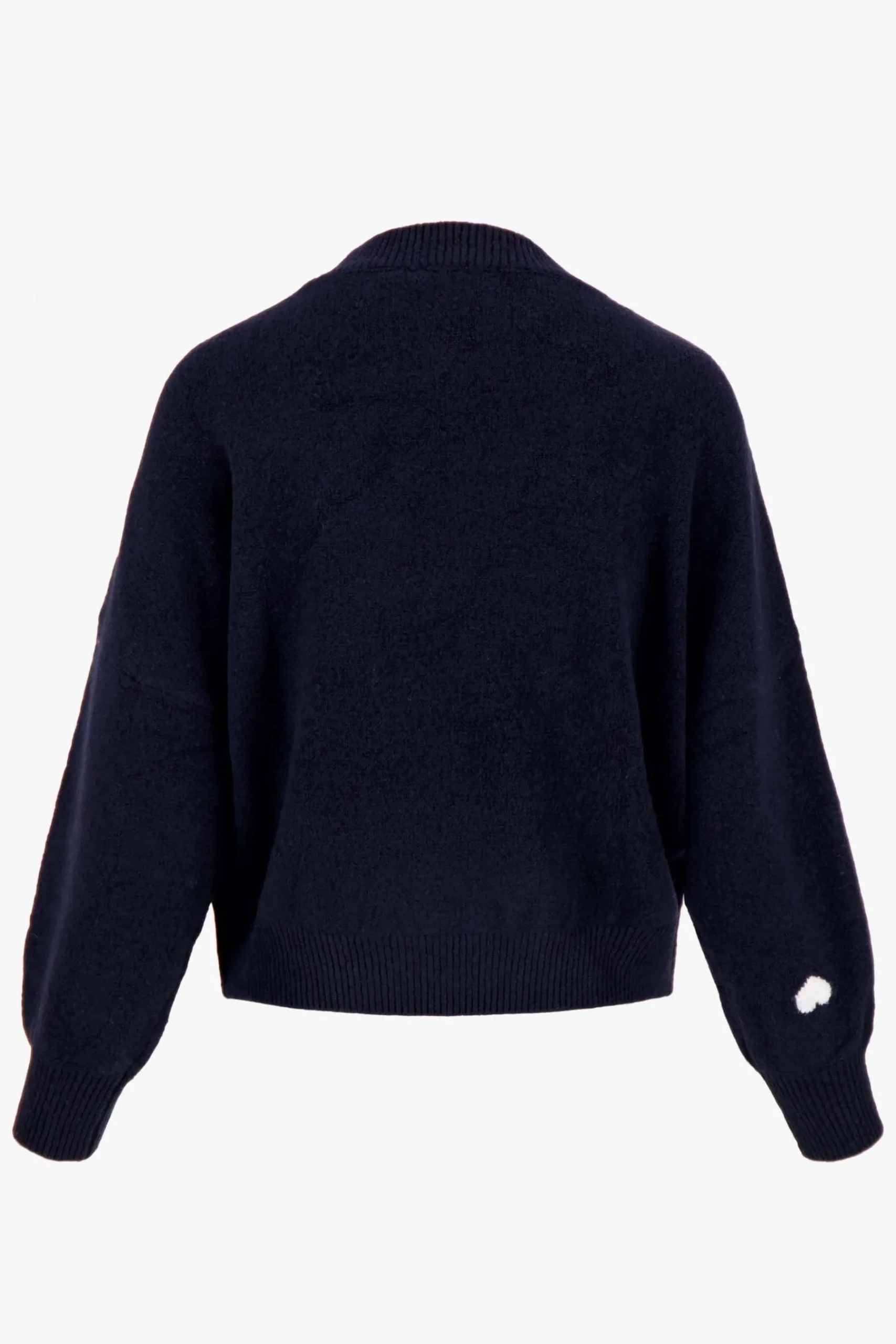 Zusss trui met hartje detail donkerblauw|Een fijngebreide zachte trui van Zusss. Met deze basic trui in de kleur donkerblauw kun je alle kanten op! Draag ‘m met een relaxte outfit voor een avondje op de bank of op een Zusss jeans voor een dagje uit. Heb jij al een gelegenheid in gedachten? Je combineert ‘m met allerlei kleuren! Een leuk detail is het witte hartje onderaan de rechtermouw. Dit item is gemaakt van 68% acryl, 28% polyester en 4% elastaan. Vergeet niet om een kijkje te nemen bij de rest van het Zusss kleding assortiment. Welk item combineer jij met deze trui?|Zusss: basic, stoer, uniek en een tikkeltje eigenwijs.
