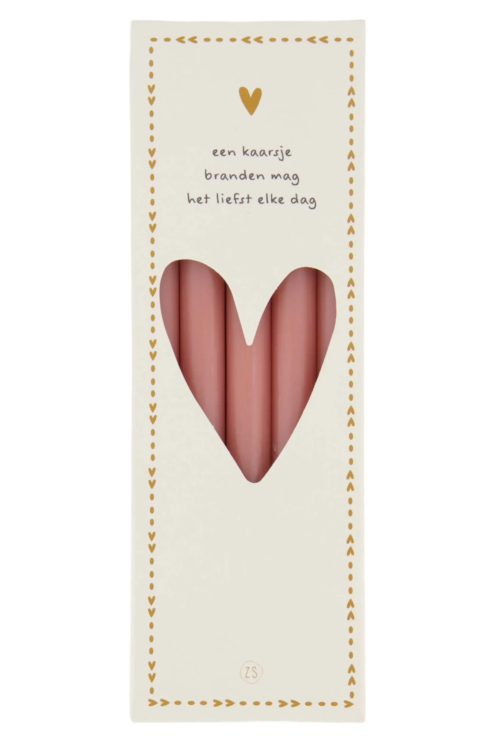 Online doosje met 10 smalle kaarsjes 17cm roze rood Kaarsen