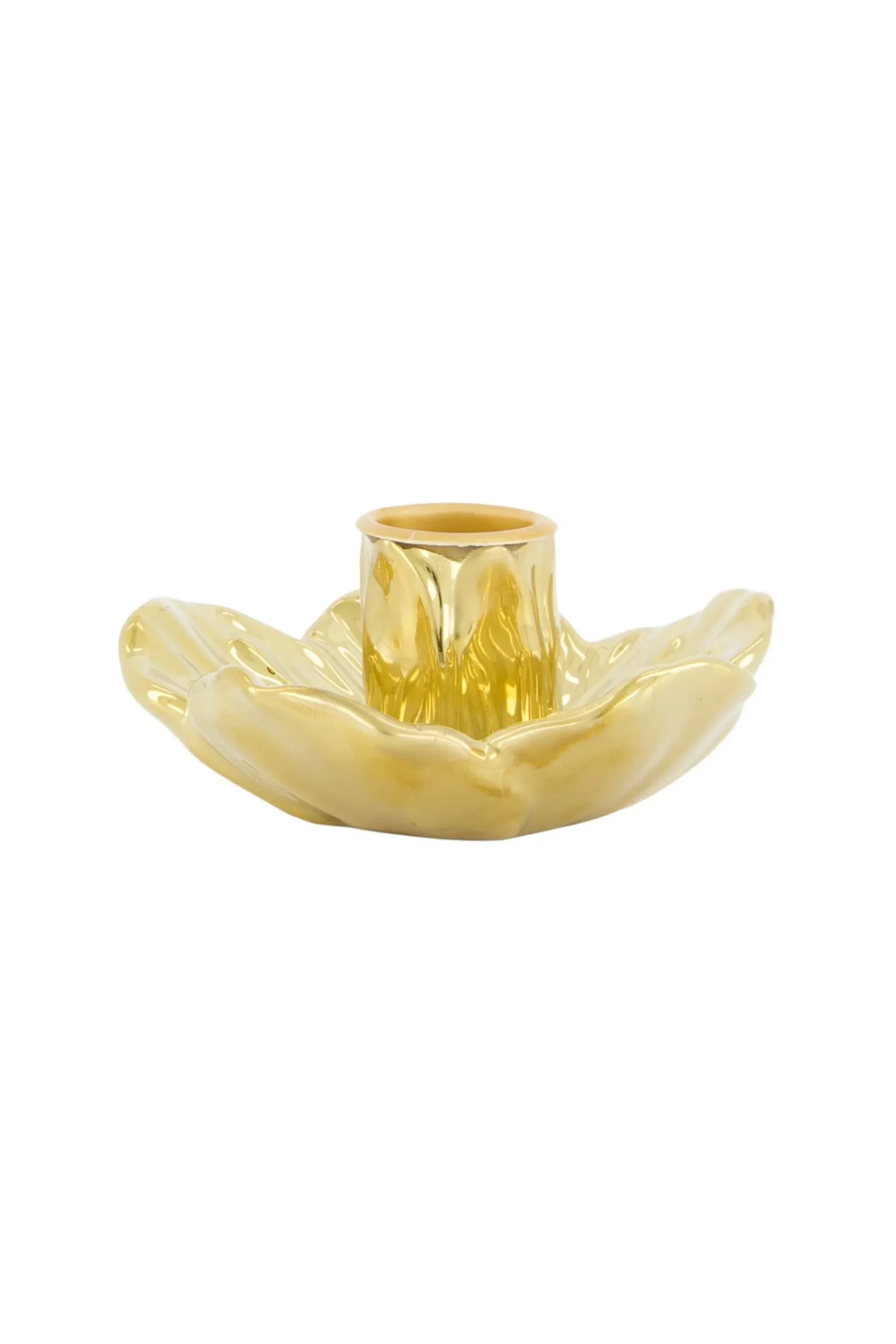 Zusss keramieken kandelaar bloem goud|In deze kandelaar van Zusss kun je de leukste kaarsen branden. Deze kandelaar is g…