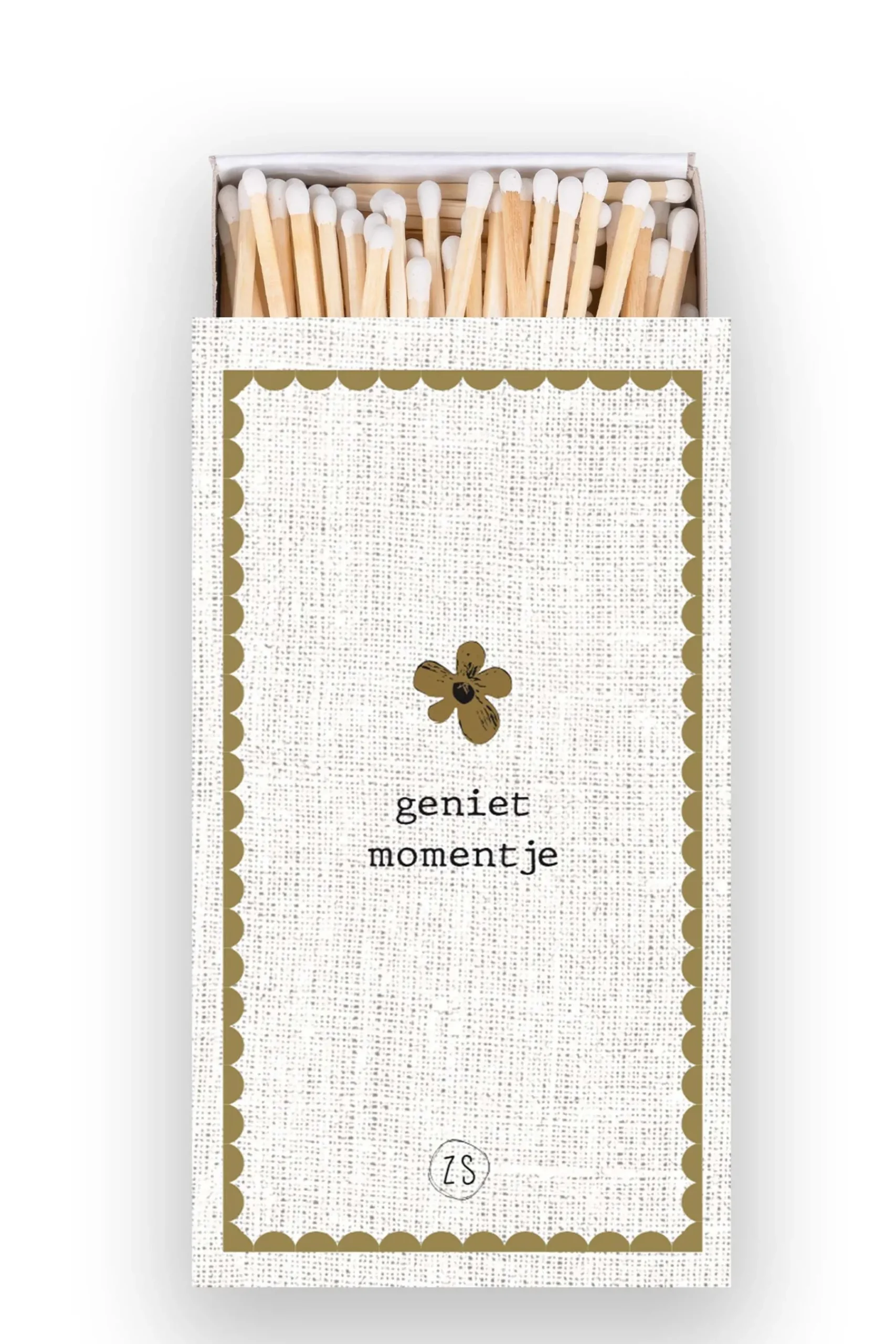 Zusss lucifers genietmomentje linnen/goud|Dit doosje lucifers van Zusss mag zeker gezien worden! Geef ‘m een mooi plekje…