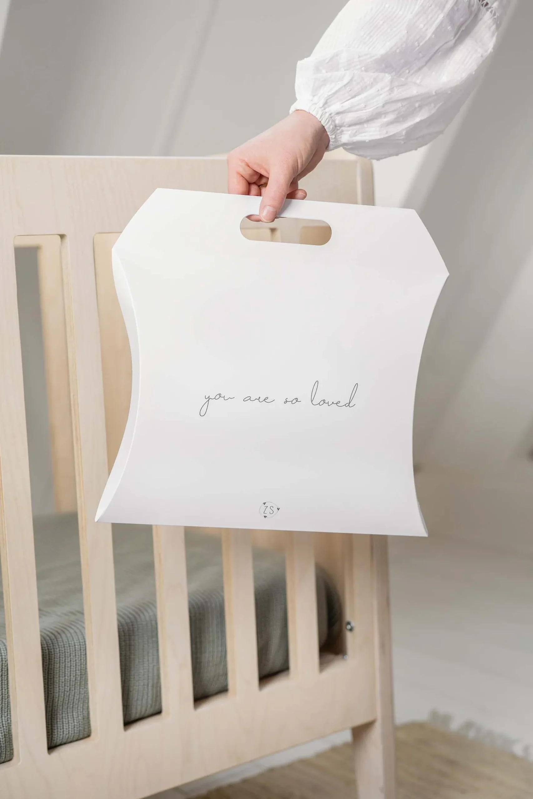Zusss kadoverpakking met de tekst you are so loved|Met deze kadoverpakking van Zusss maak je het geven van een (kraam)cadeautje nog leuker! De papieren kadoverpakking is wit met daarop de tekst “you are so loved” in zwarte, sierlijke letters. Daaronder staat het Zusss logo afgebeeld. Je vouwt de zijkanten in elkaar door middel van de vouwsluiting. Ook is de verpakking voorzien van een hengsel.|Zusss: basic, stoer, uniek en een tikkeltje eigenwijs.
