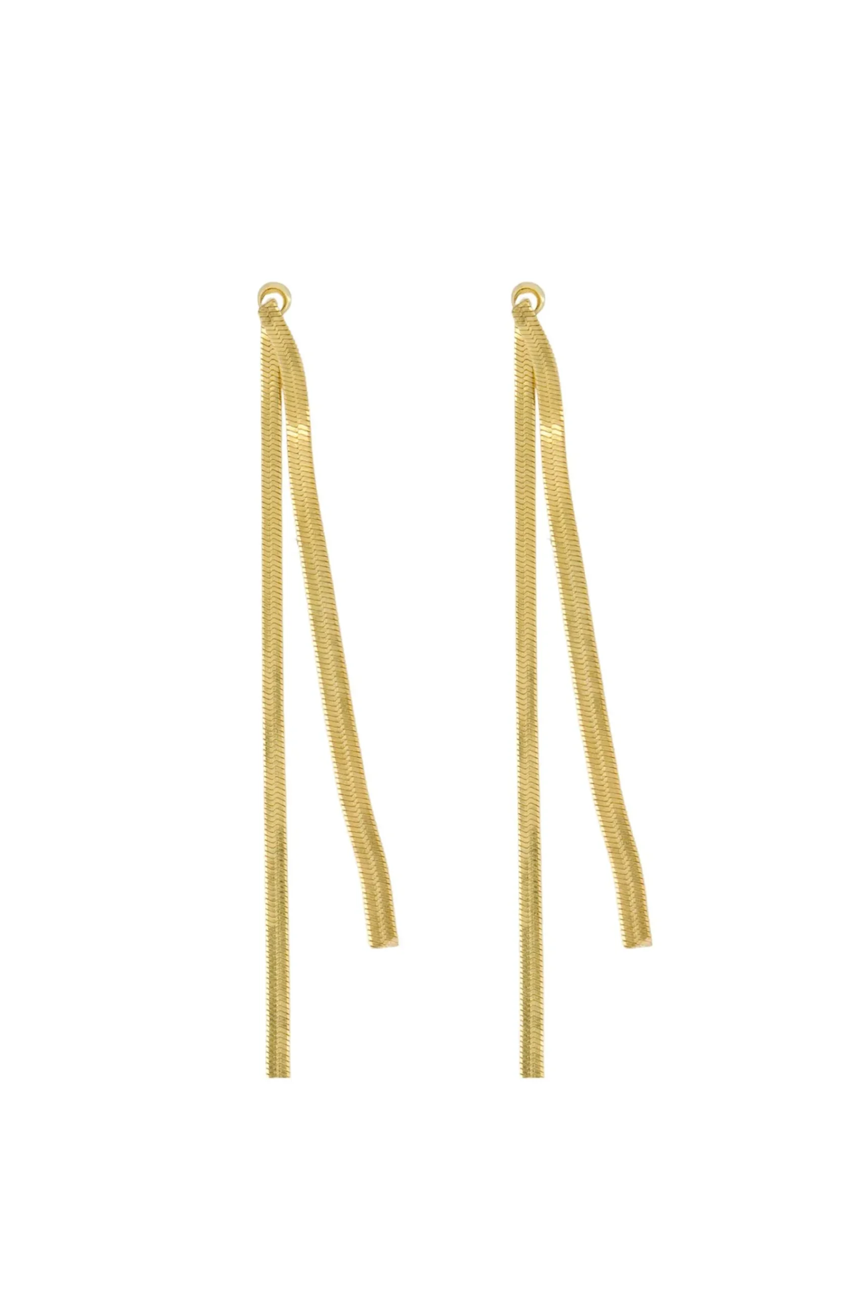 Zusss lange oorbel met visgraat structuur goud|Deze oorbellen van Zusss zijn zo gaaf! De gouden oorhangers zijn 8,5cm lang en hebben een visgraat structuur. Wat een leukerds! Deze lange oorbellen zijn gemaakt van stainless steel en verkleurden hierdoor niet. Met deze leuke dingen val jij op! Ook leuk om kado te geven!|Zusss: basic, stoer, uniek en een tikkeltje eigenwijs.