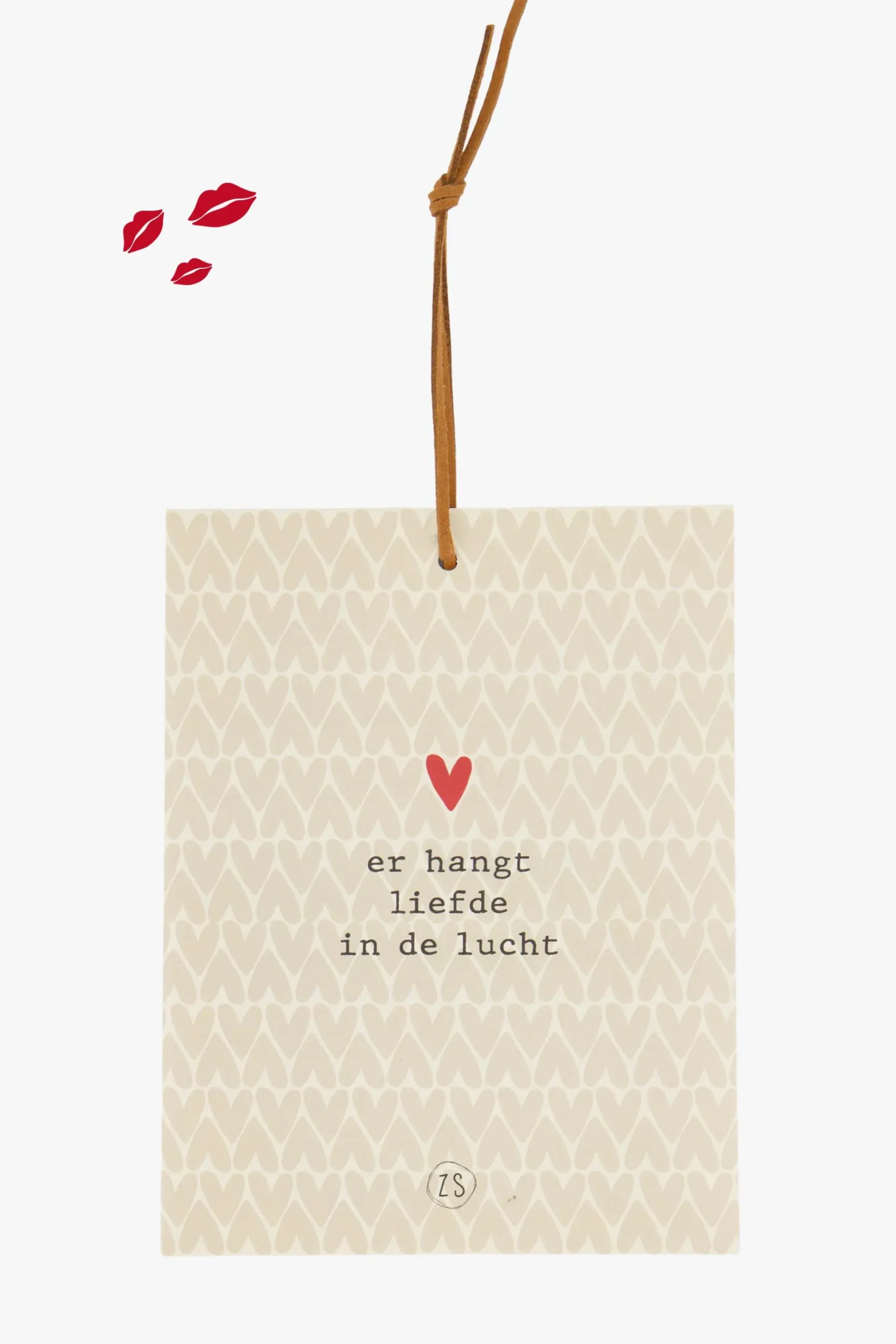 Zusss geurzakje liefde in de lucht zand|Dit geurzakje van Zusss laat jouw hele huis lekker ruiken naar fresh cotton! Met het lintje hang je ‘m gemakklijk in je kledingkast of aan een deurklink. Dit geurzakje heeft een zandkleurige hartjesprint. Op het zakje staat: er hangt liefde in de lucht. Een zakje vol liefde dus! Dit item is ook erg leuk als kadootje voor een bruiloft of een kadootje voor je lieffie!|Zusss: basic, stoer, uniek en een tikkeltje eigenwijs.
