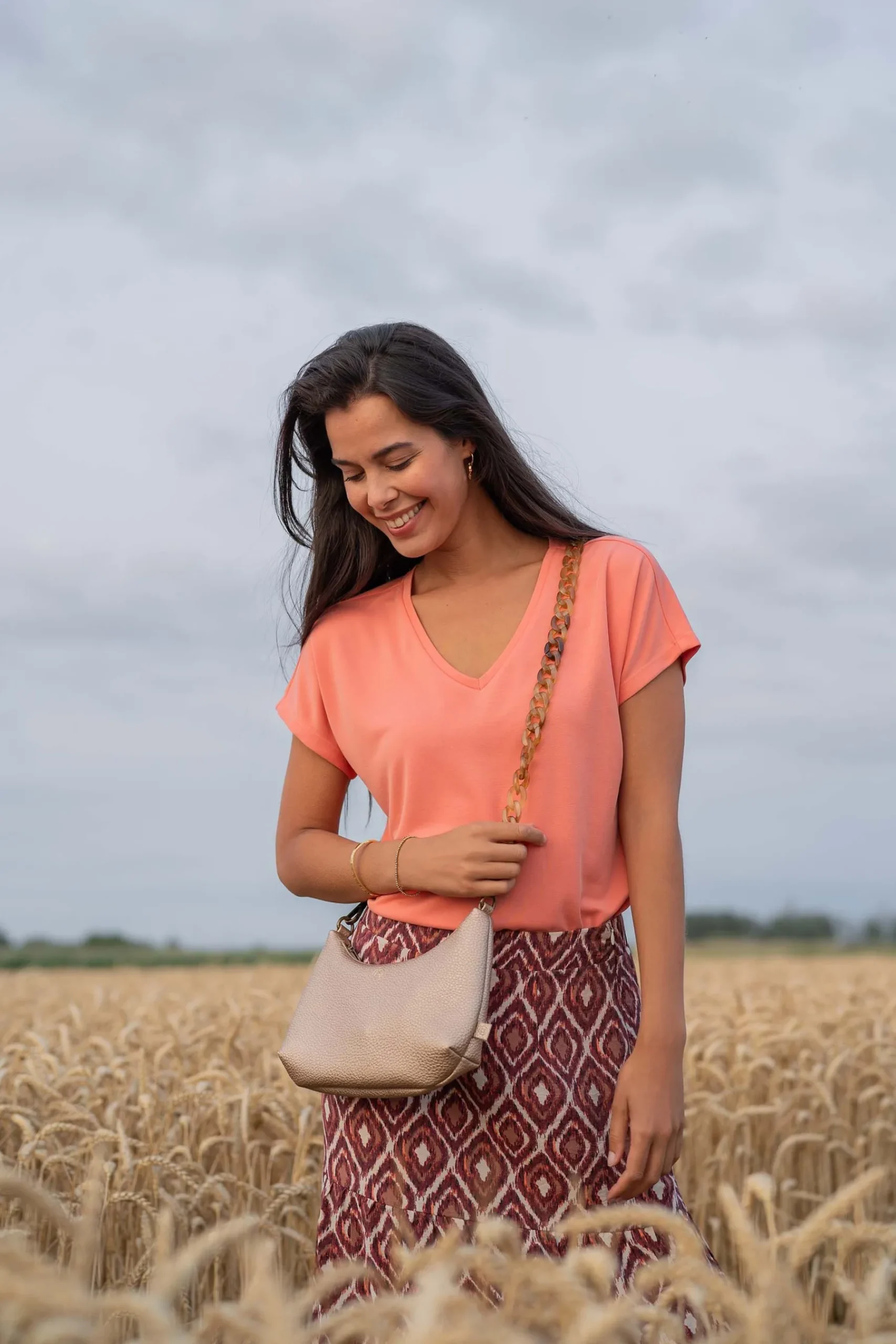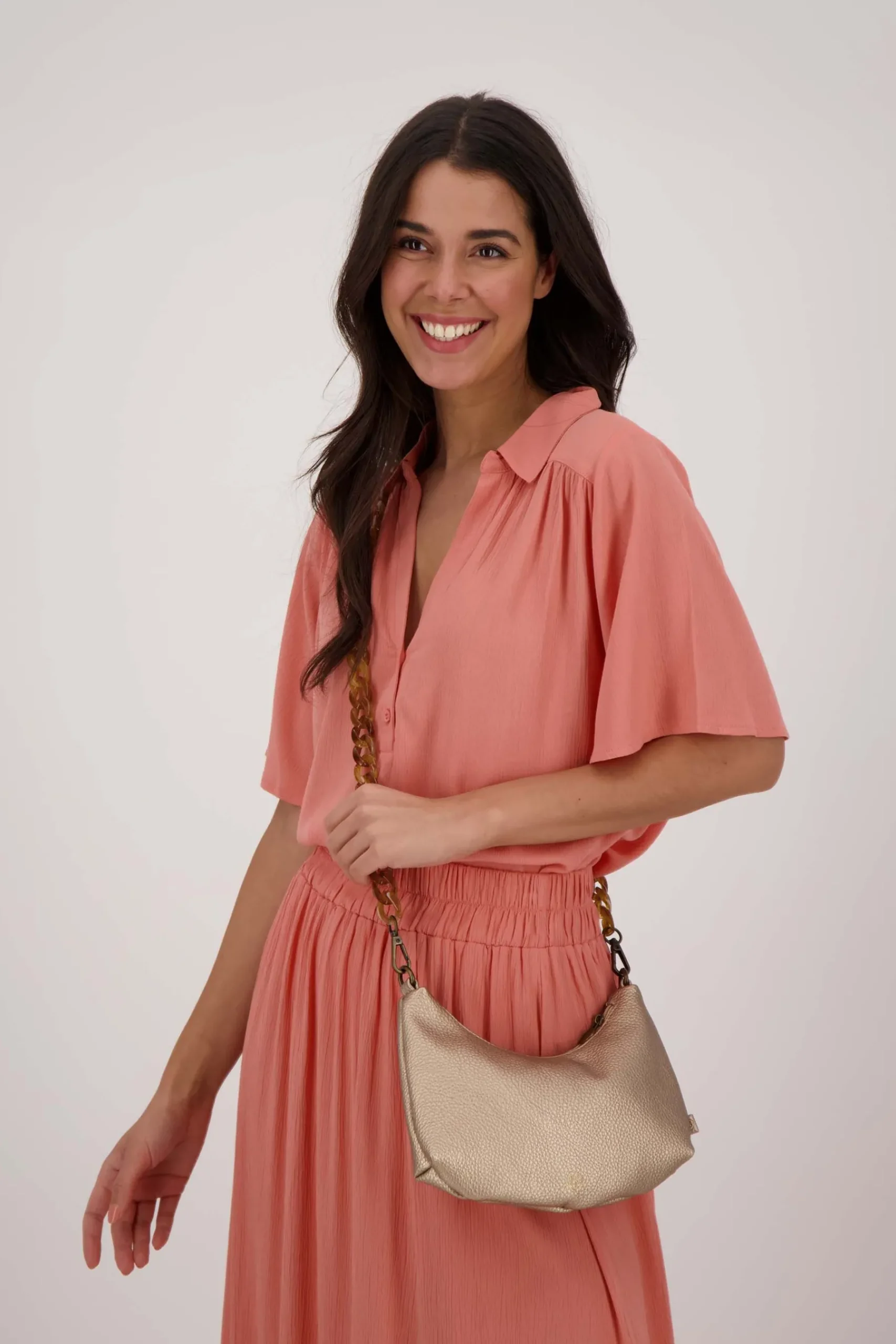 Gouden schoudertasje met hornen hengsel van Zusss|Deze Zusss schoudertas met uniek hengsel is een echte musthave! De sch…